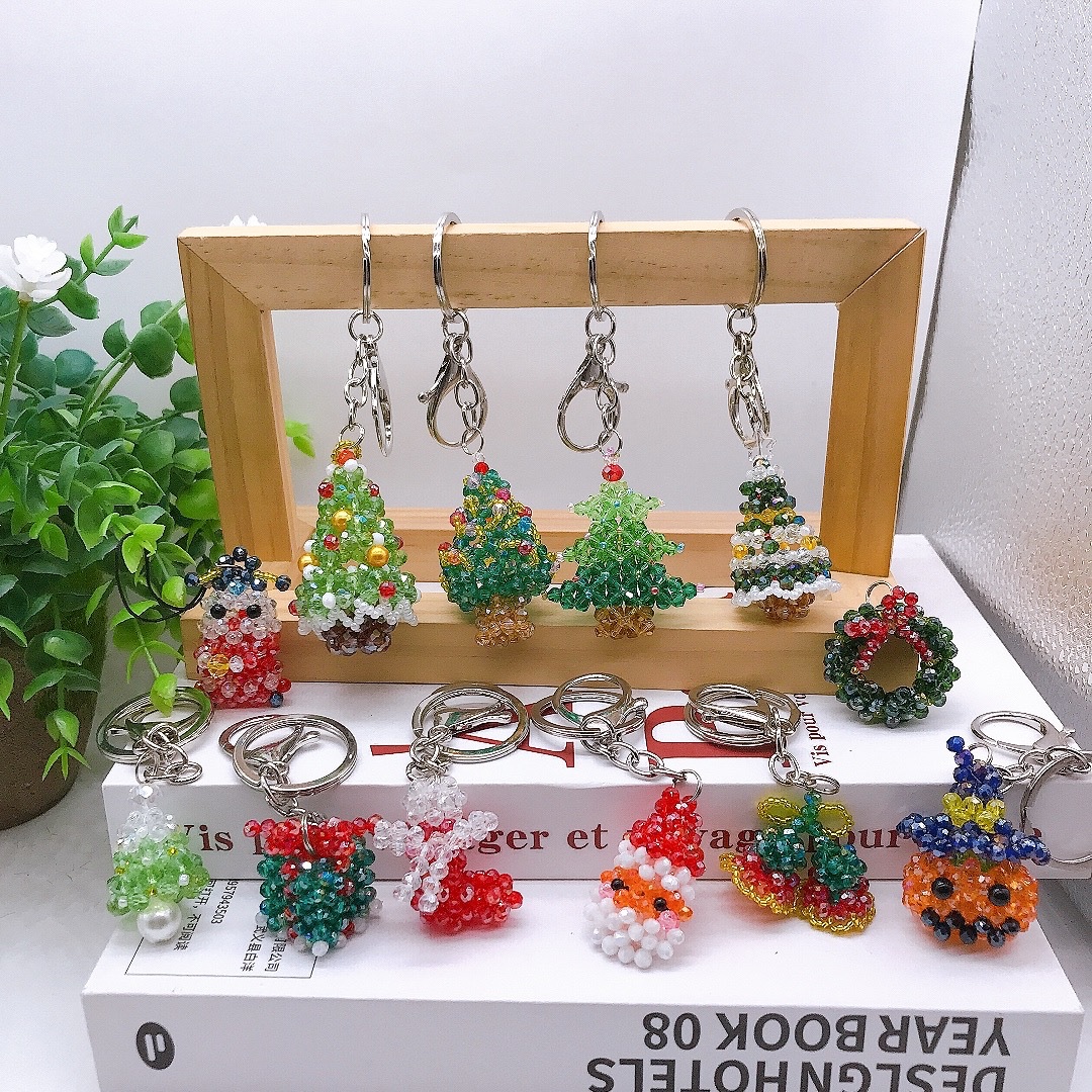 成品手工穿珠水晶圣诞树系列水晶财神挂件圣诞小礼物书包挂饰铃铛