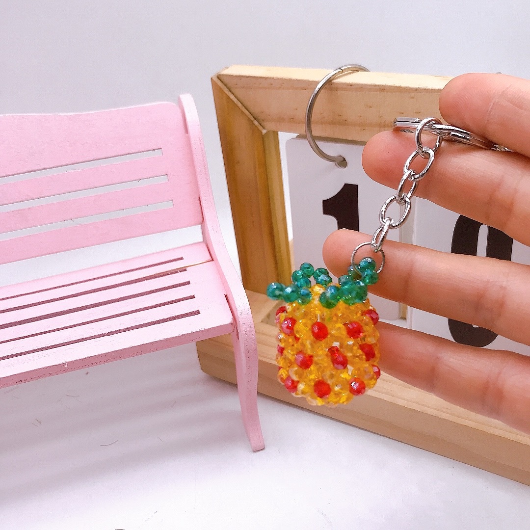 完成した手作りビーズフルーツクリスタルペンダントオレンジペタルパイナップルチリスイカペタルピーチスクールバッグペンダント