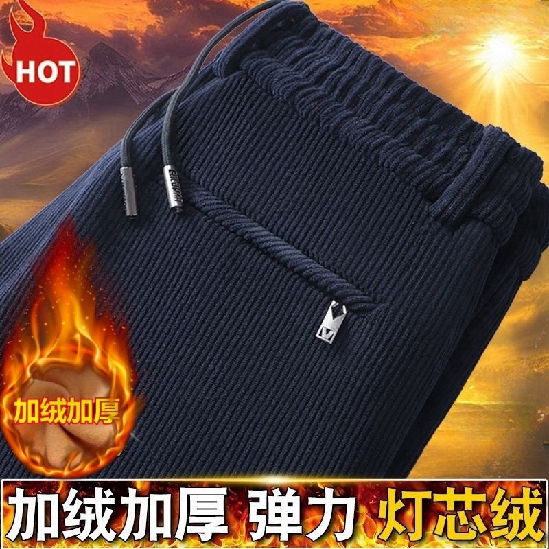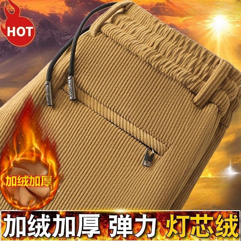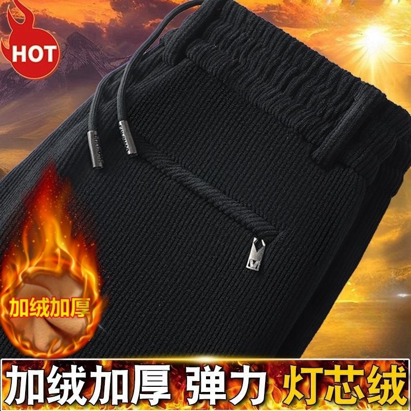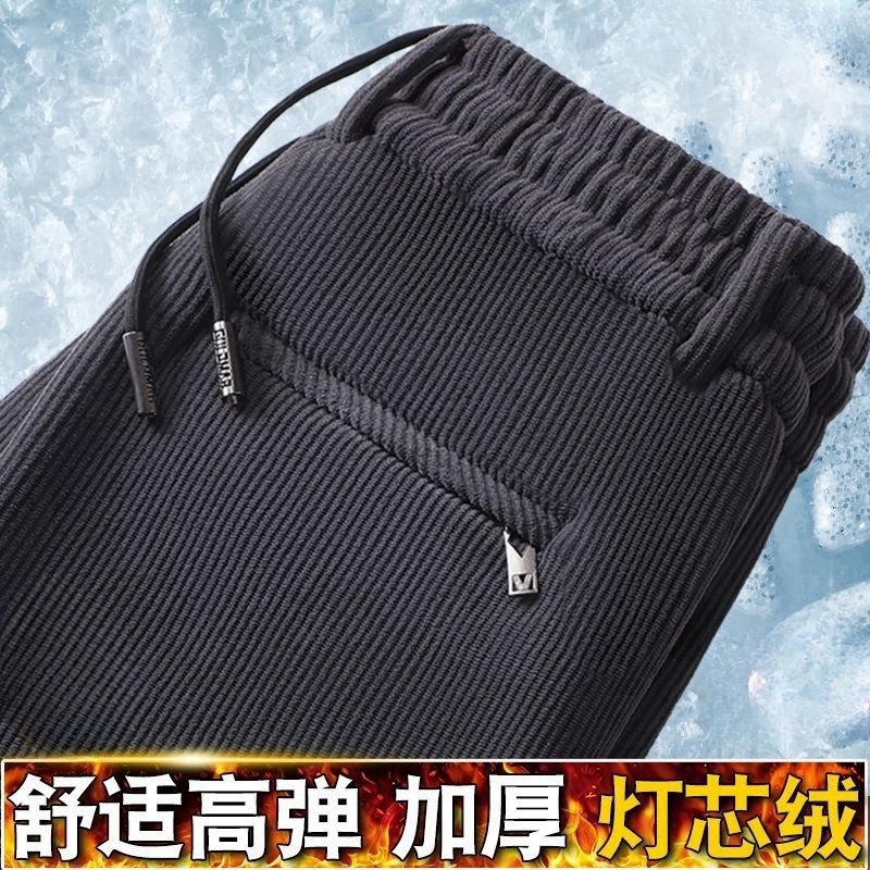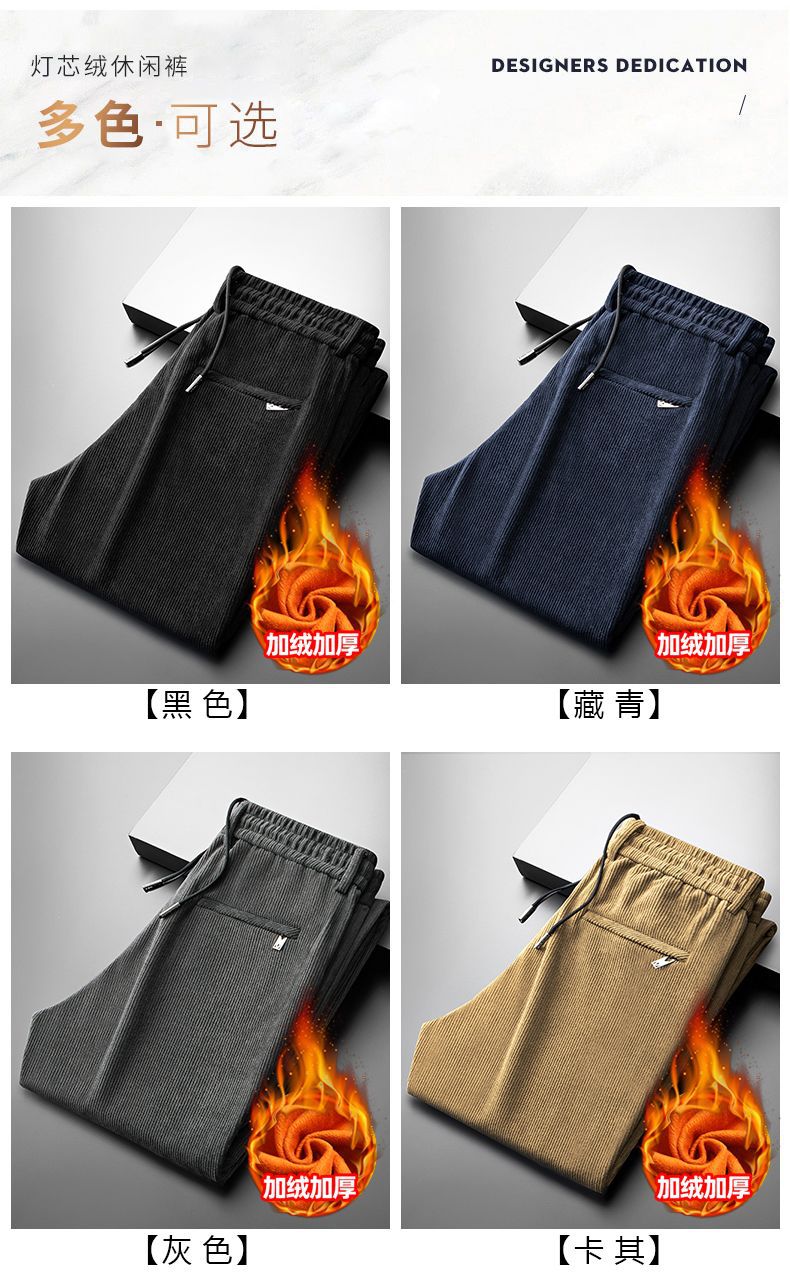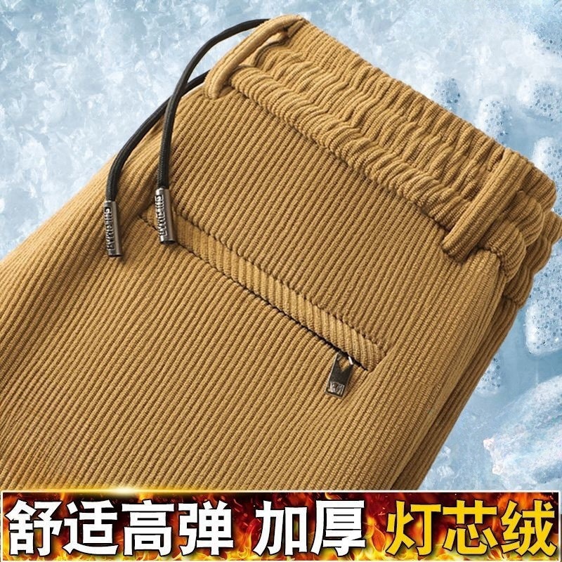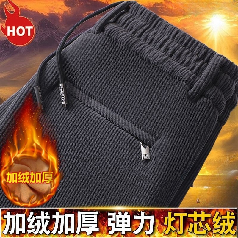 メーカー卸売りクロスボーダー対外貿易輸出男性カジュアルパンツ秋冬にベルベットを厚くして、ストレートで腰のズボンを緩めた