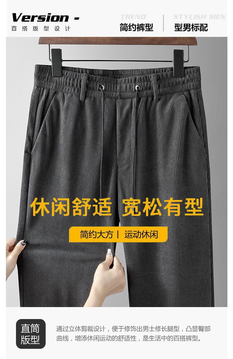 秋冬のコーデュロイのズボンの男性の香港の風のブランドの百合は腰のカップルのゆったりしているまっすぐな筒のレジャーのスポーツの衛のズボンを締めます。