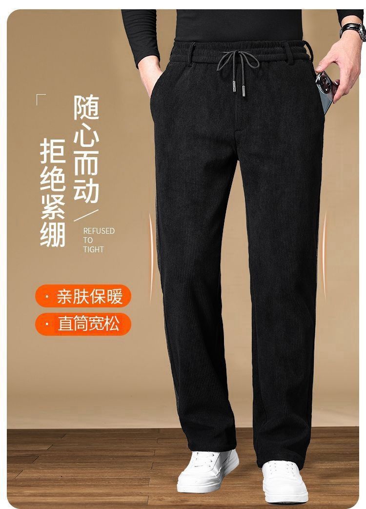秋冬のベルベットはズボンの男性のコーデュロイの男性のストレートでゆるいサイズの中高年のお父さんのカジュアルなズボンを厚くした