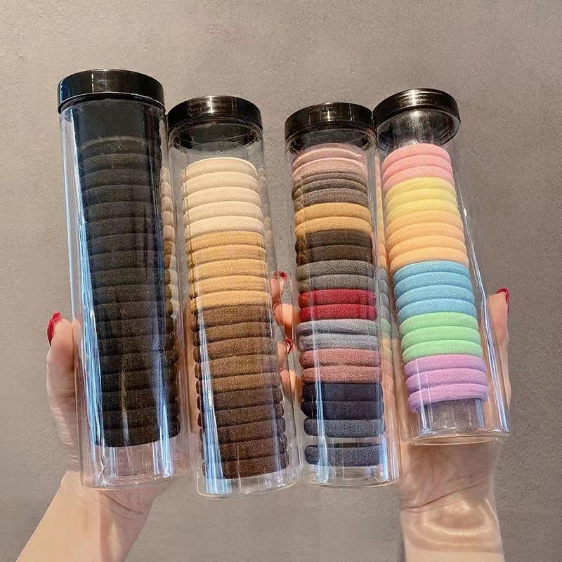 1缶20本の高弾力ヘアリングは髪を傷つけずに丈夫でシンプルな馬尾ファッションロープ缶に太い髪ロープを入れる