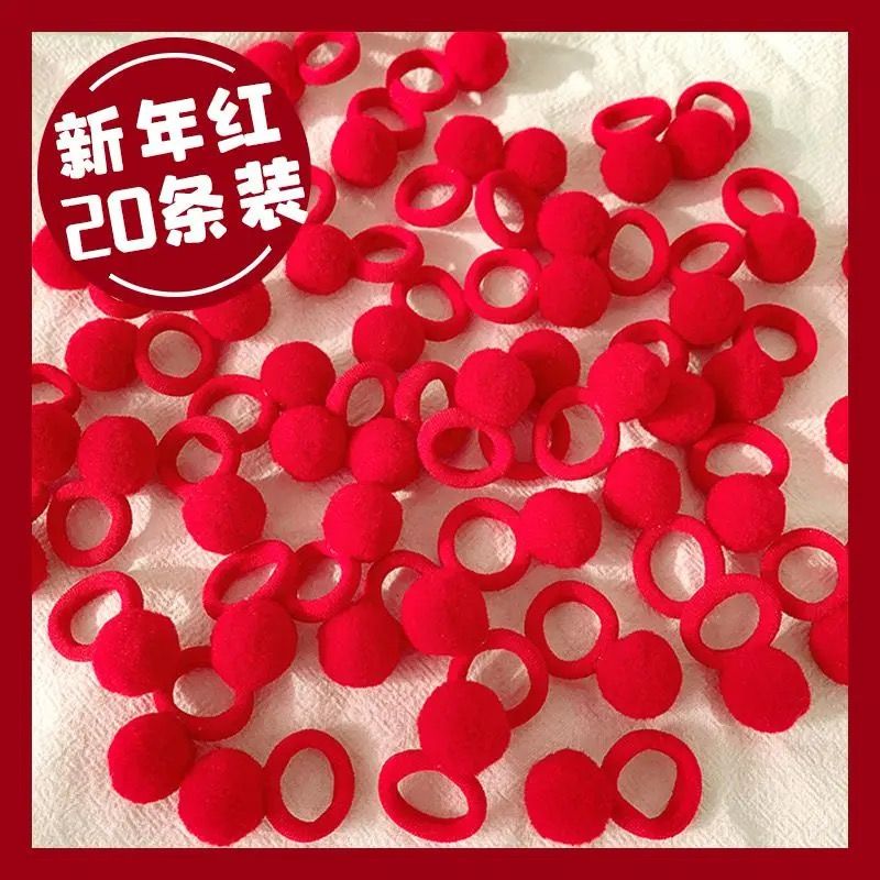 子供の新年の赤い高弾毛玉の皮の筋の甘い女の子の新年のお祝いのゴムの筋は髪の毛の親指を刺します。