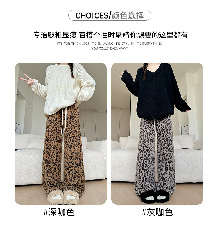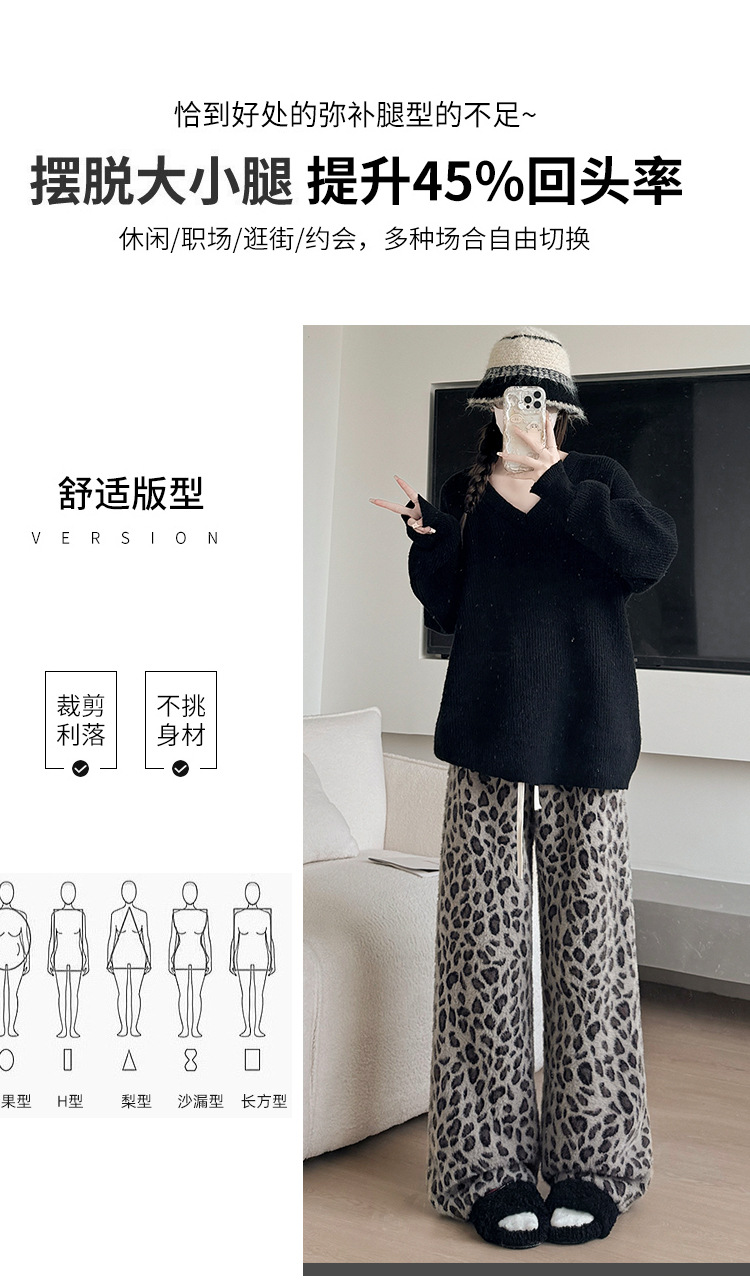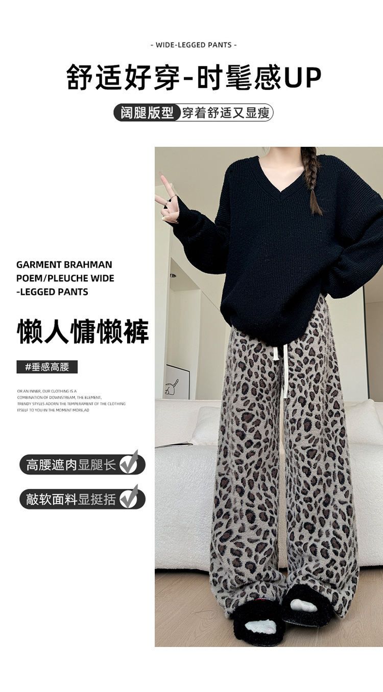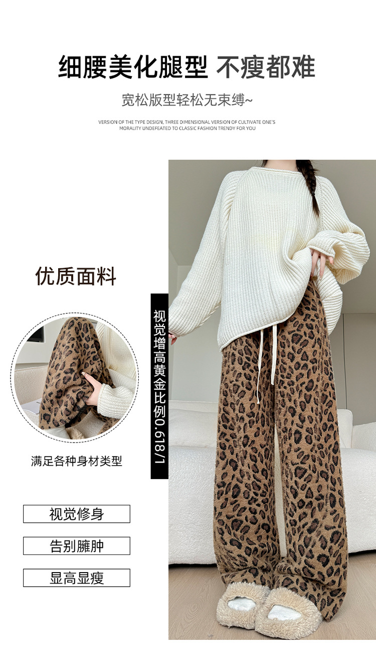 高重量ヒョウ柄ワイドレッグパンツ女性の春の新作パンツ女性のスリムフロアレングスパンツ肥厚ミンクベルベットストレートパンツ