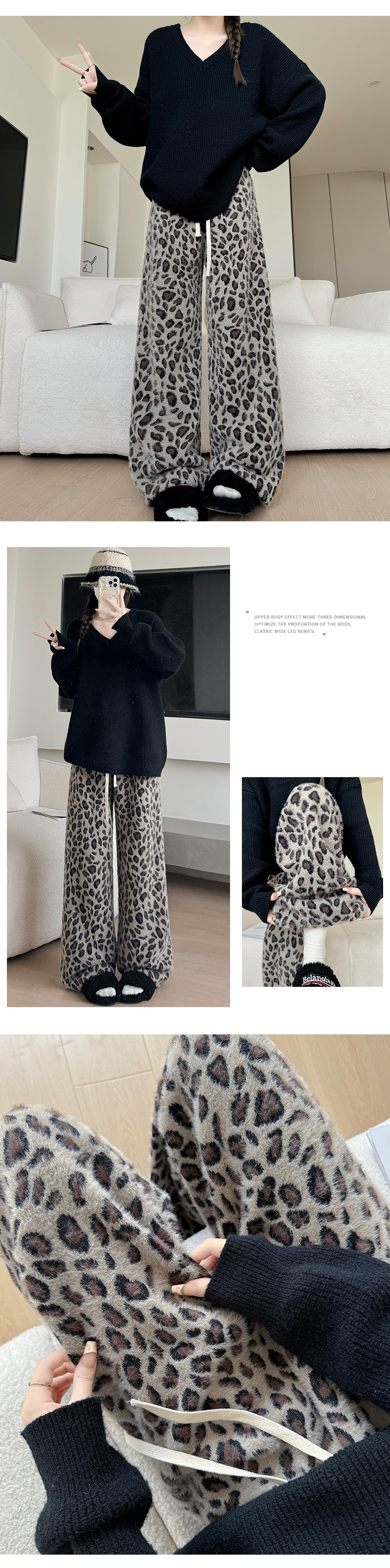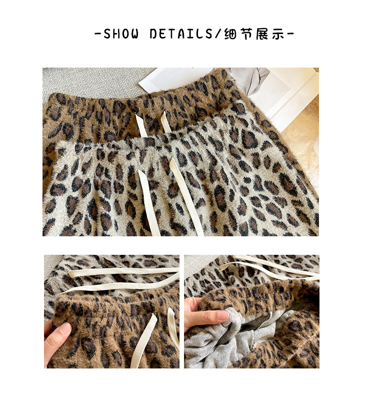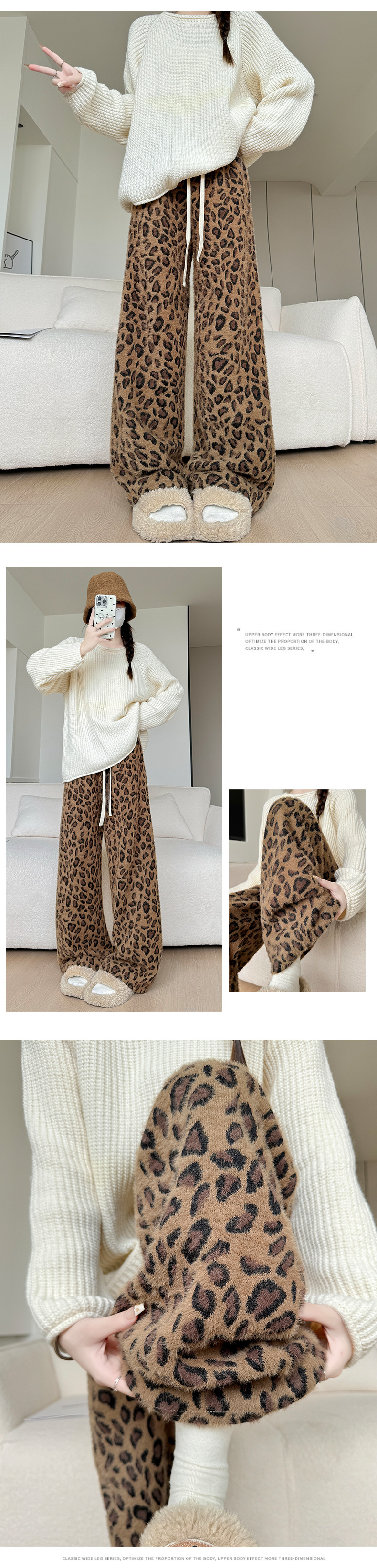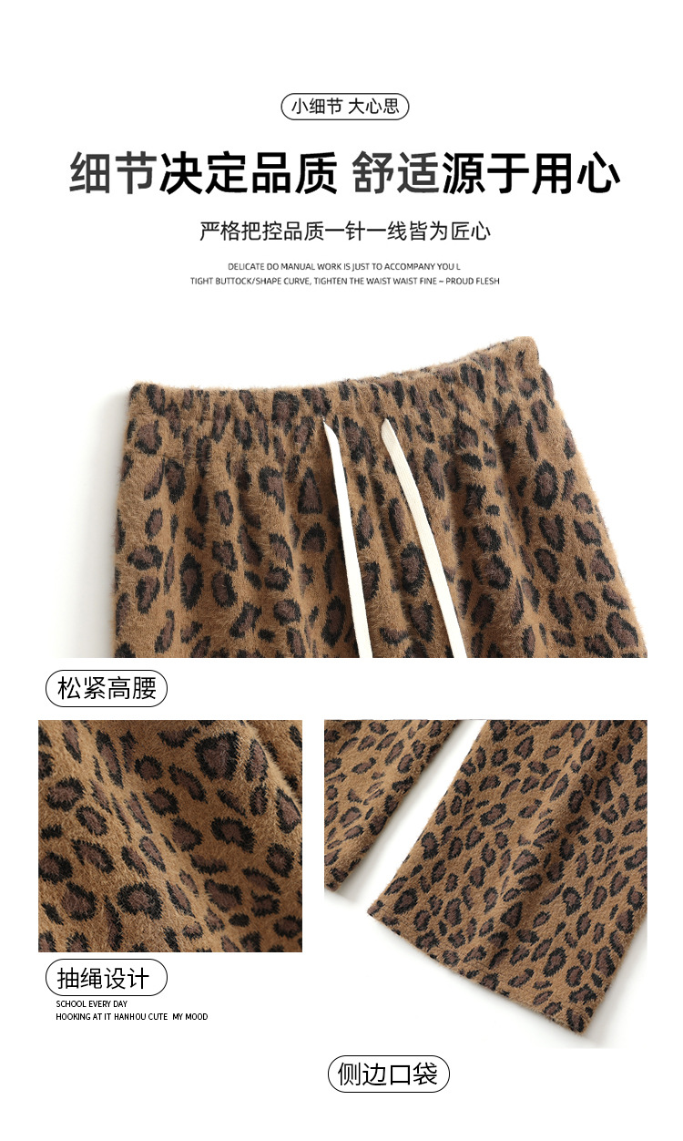 高重量ヒョウ柄ワイドレッグパンツ女性の春の新作パンツ女性のスリムフロアレングスパンツ肥厚ミンクベルベットストレートパンツ