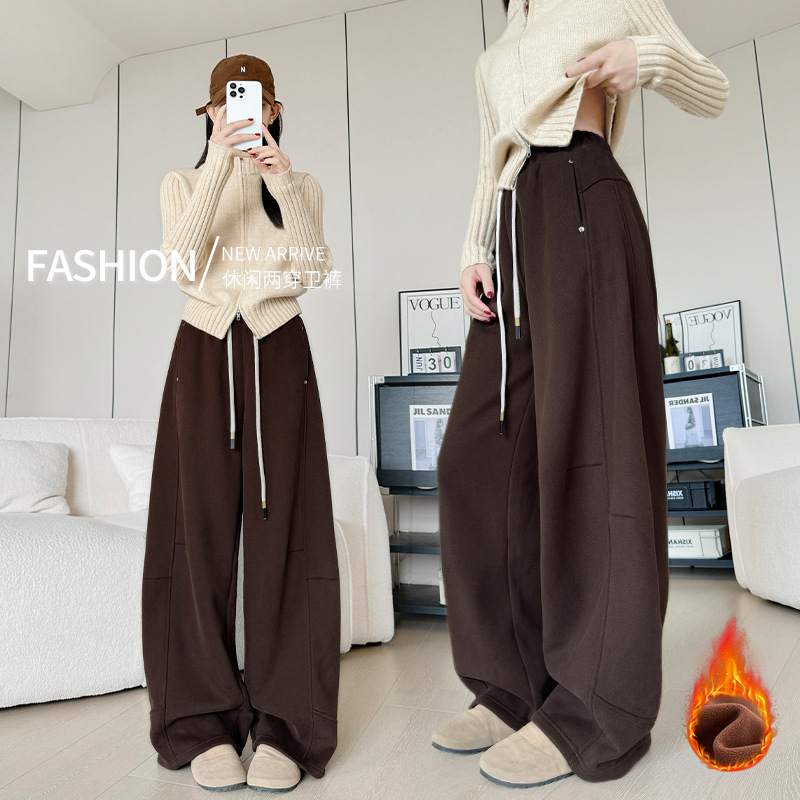 咖色糯米裤加绒裤子女冬新款加厚直筒休闲裤垂感慵懒小个子阔腿裤