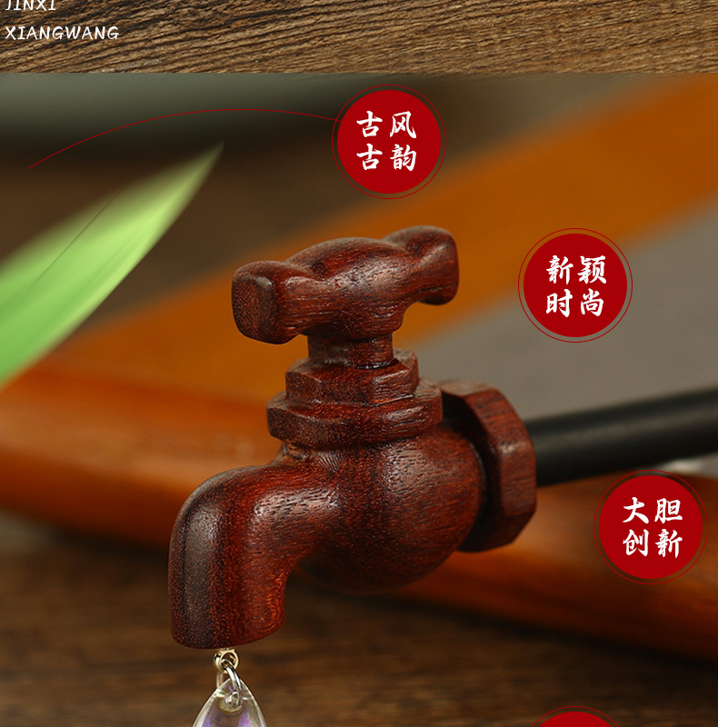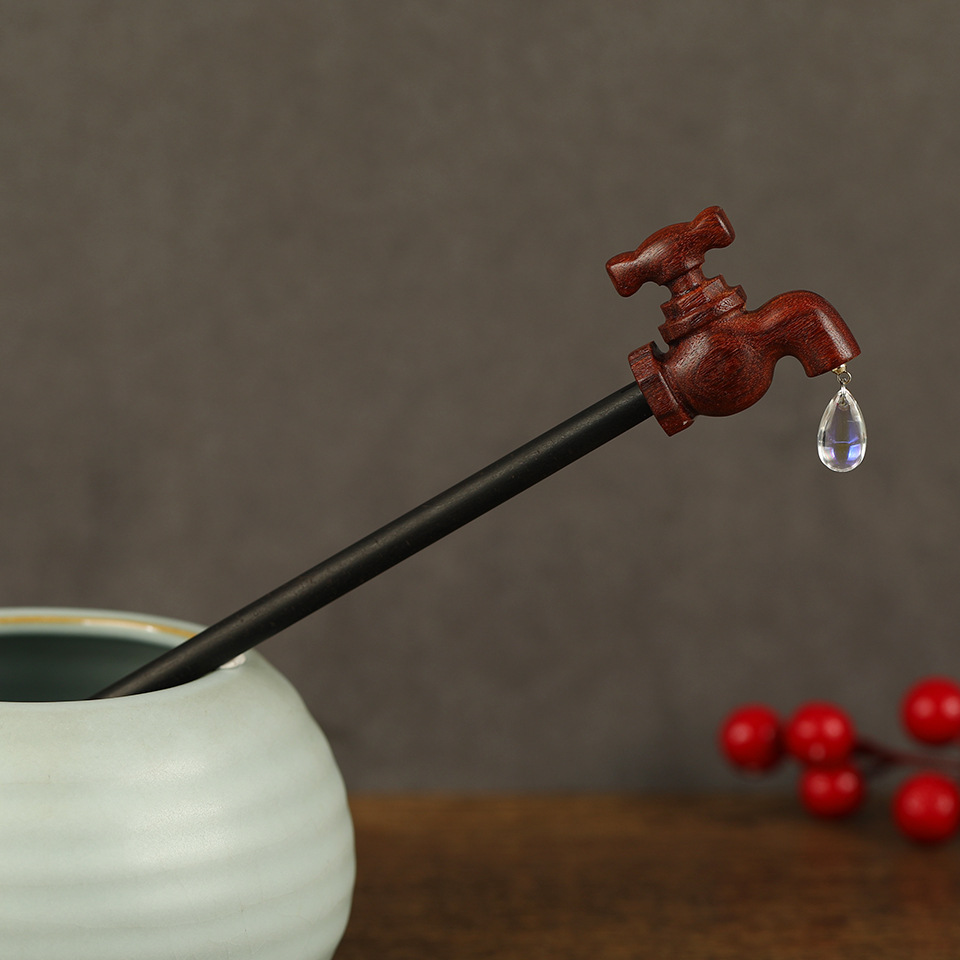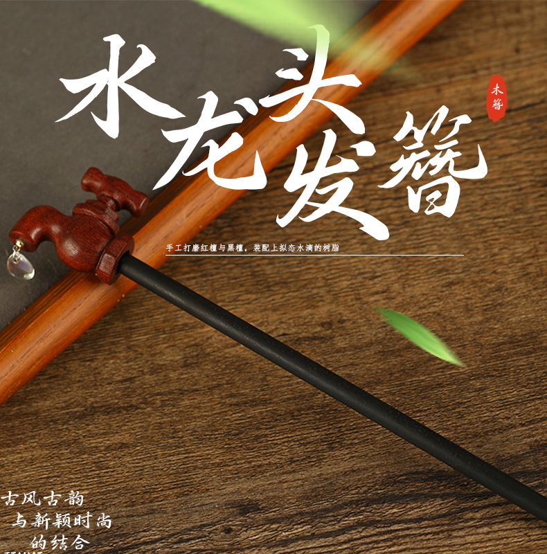 創意的な蛇口の檀木のかんざしの新しい中国式の復古的な個性は檀木の小さい大衆の髪飾りを責めます。