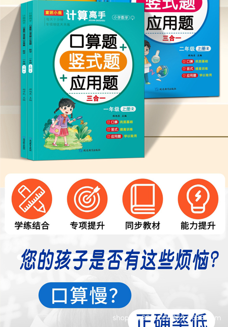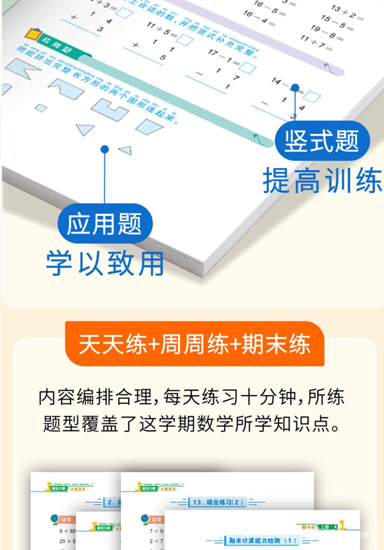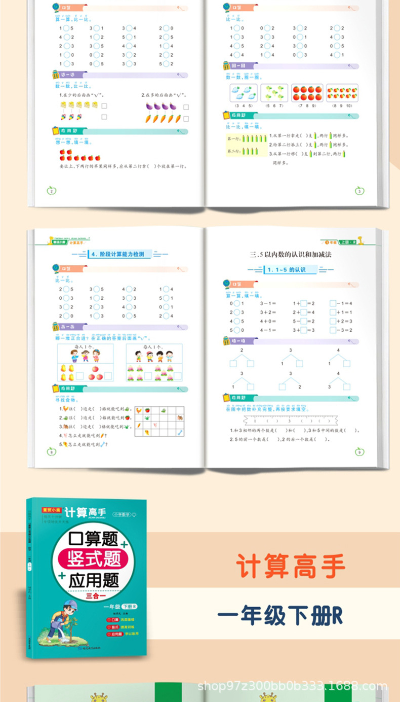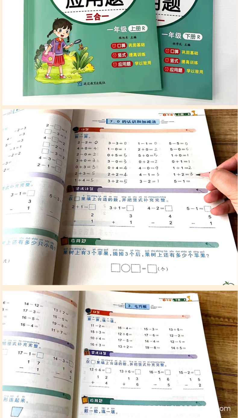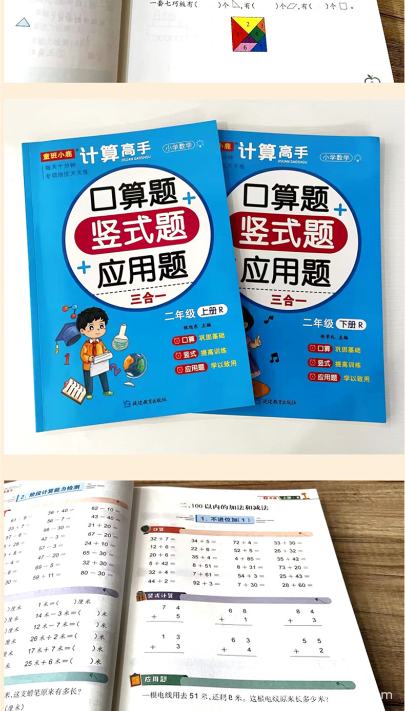 計算 + 応用問題一二三四五六年級上巻下巻数学口算問題カード北師大人教版