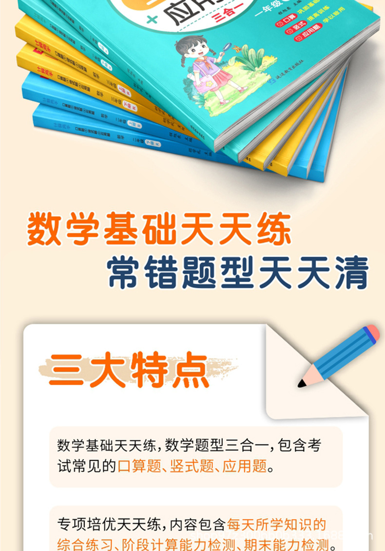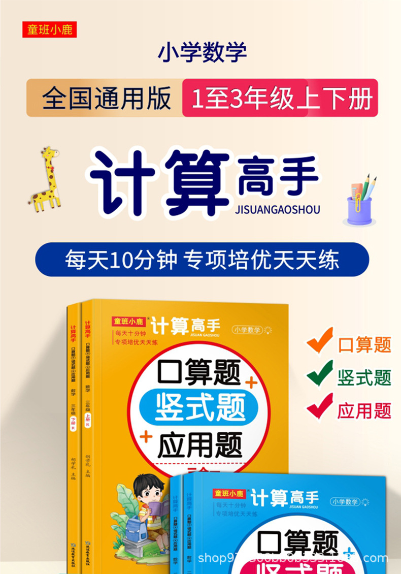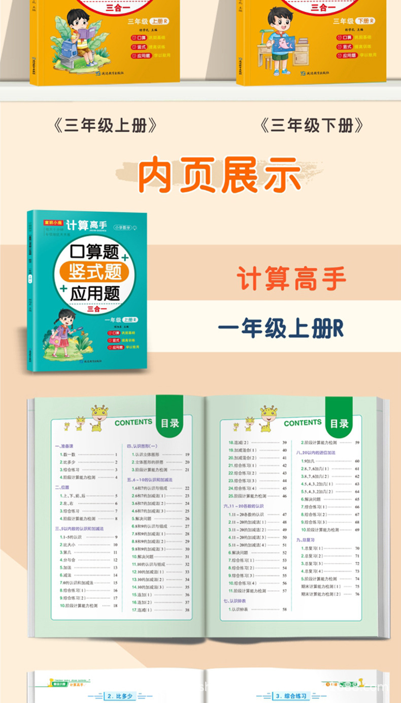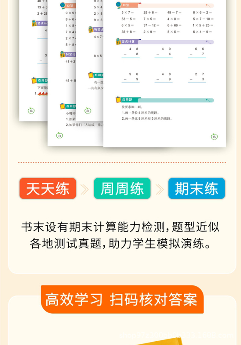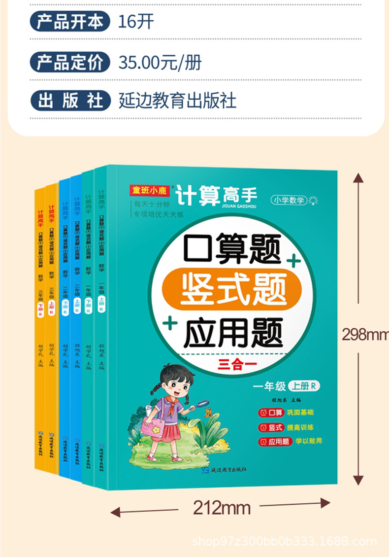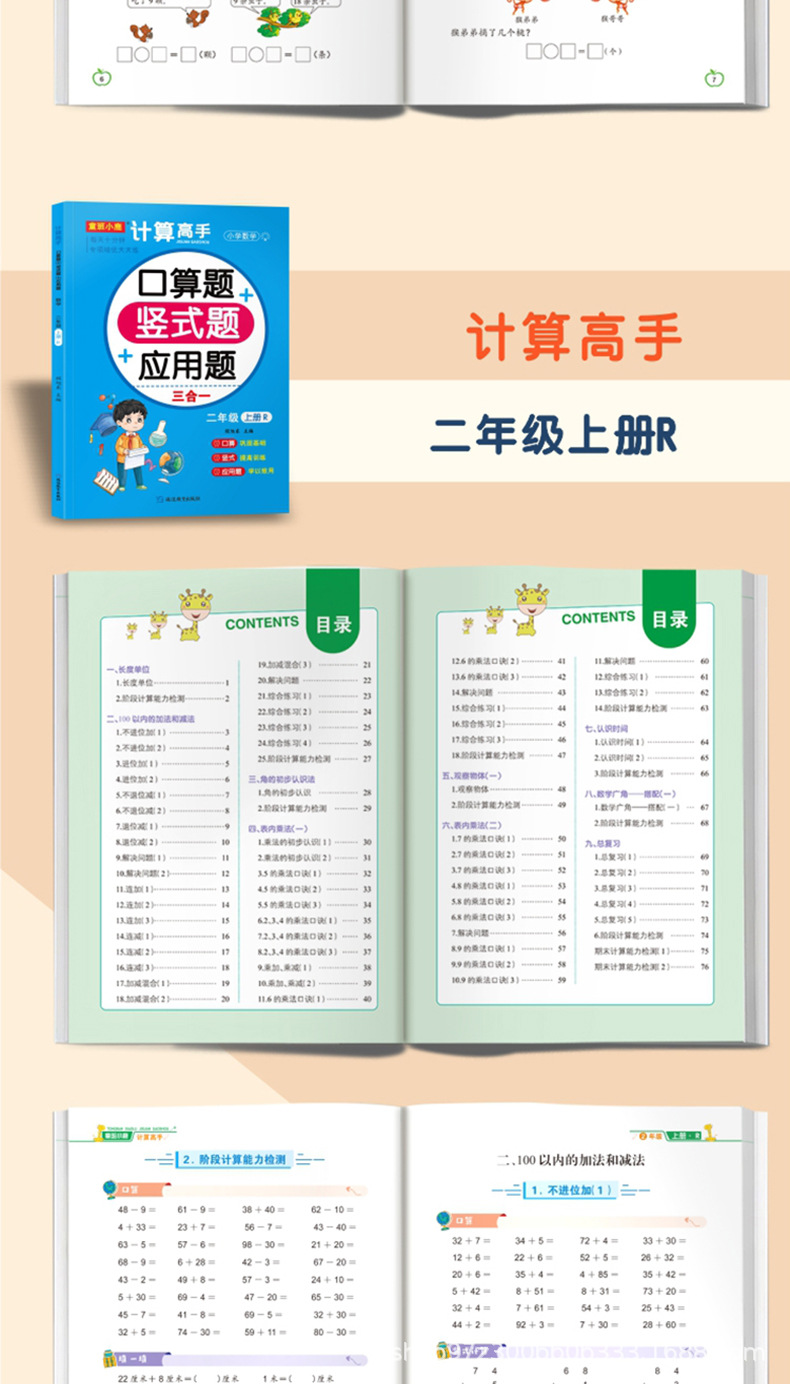 計算 + 応用問題一二三四五六年級上巻下巻数学口算問題カード北師大人教版