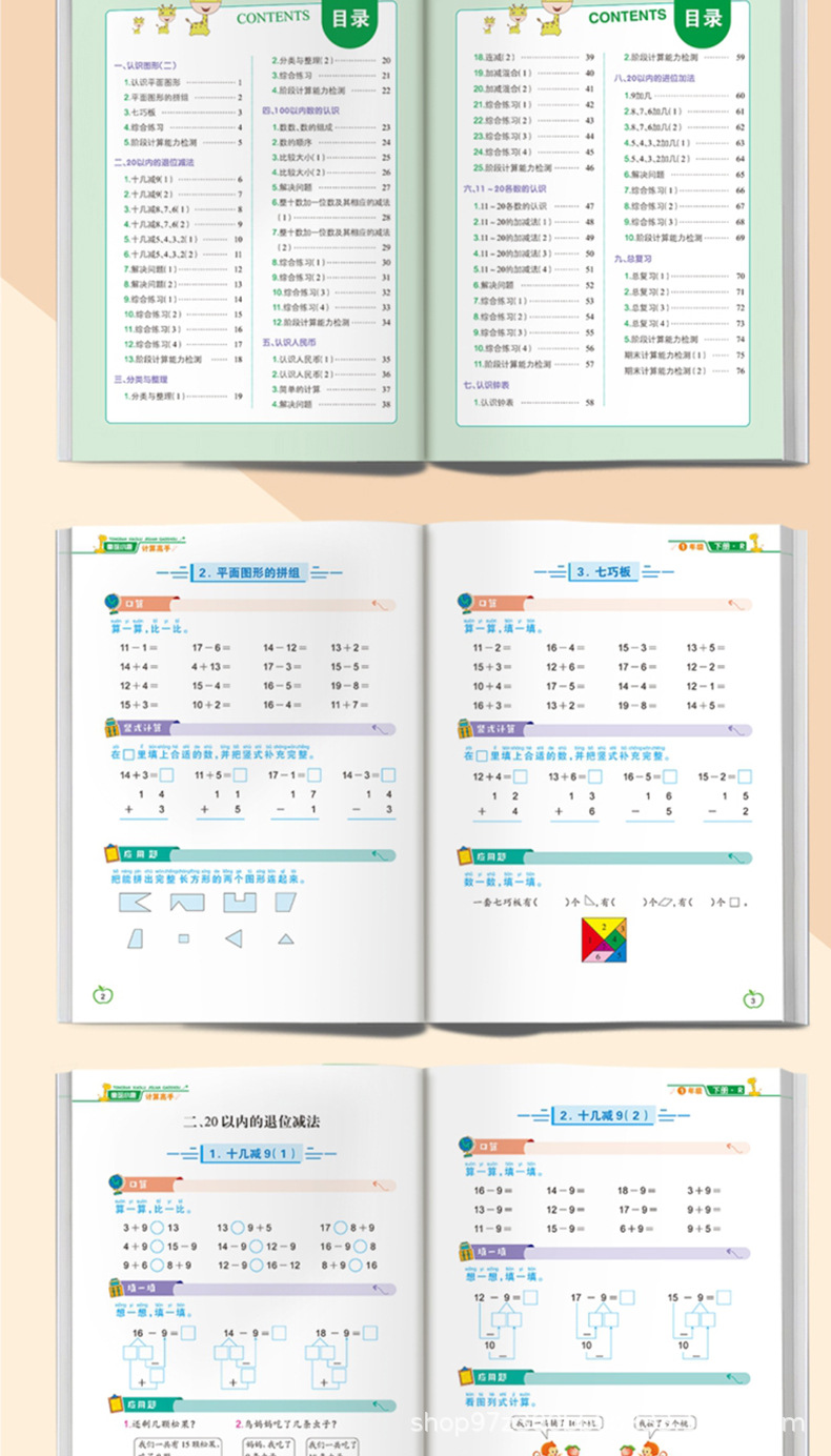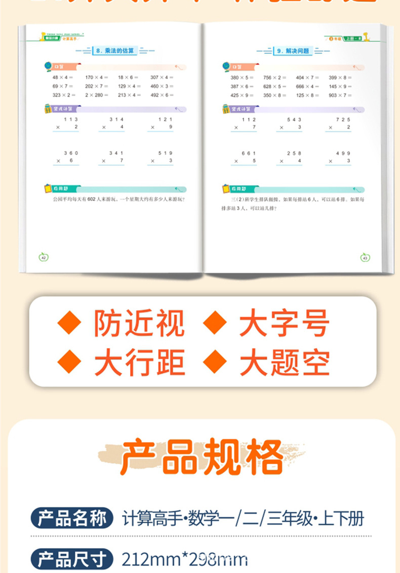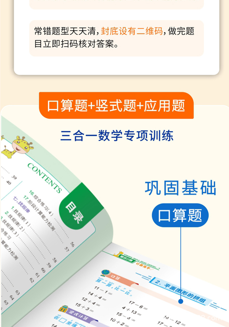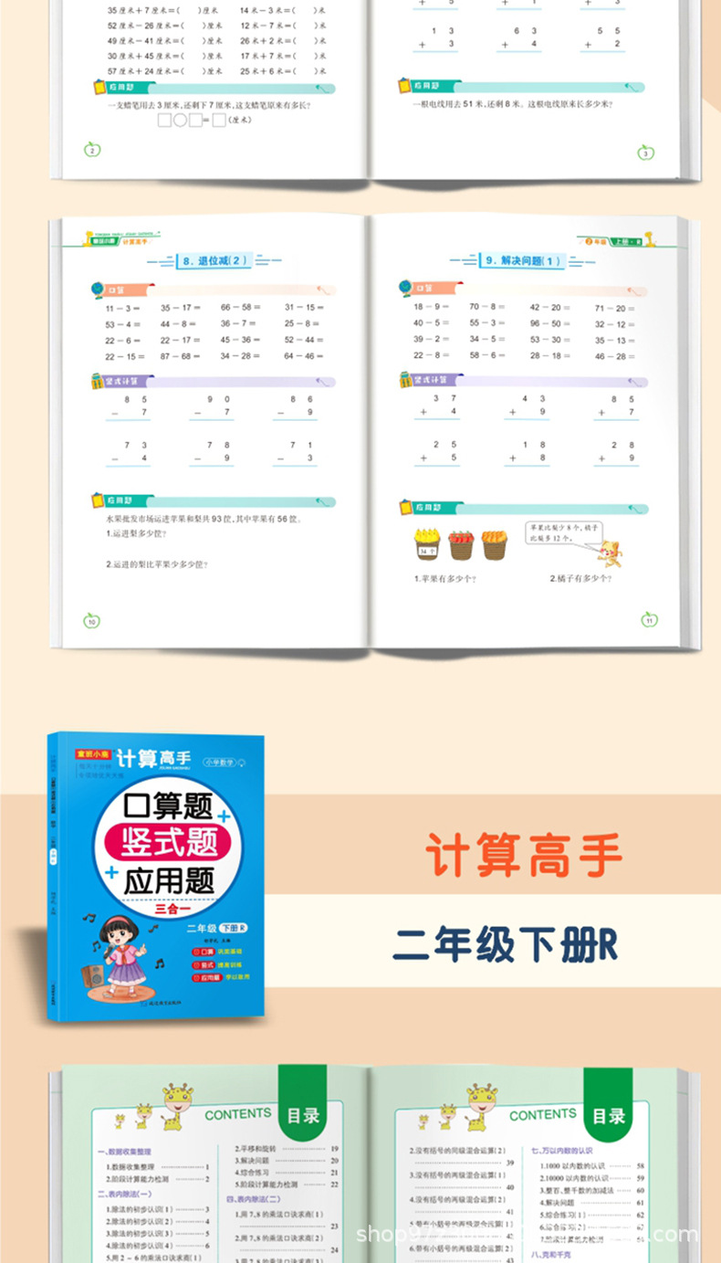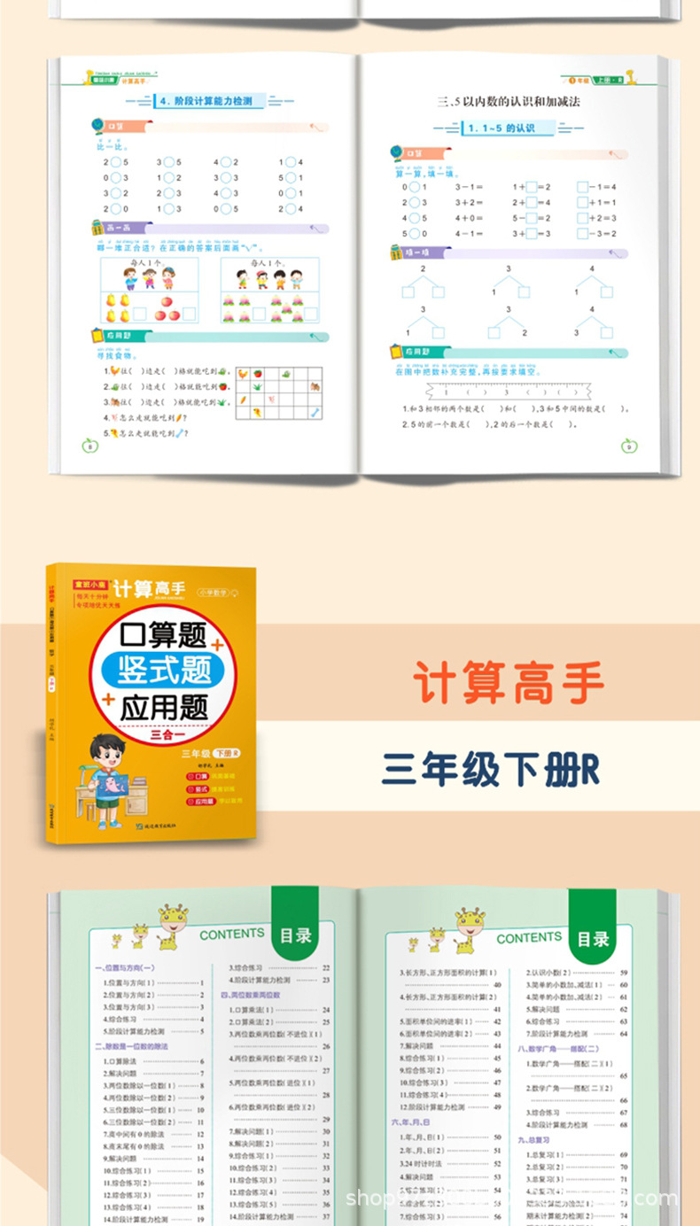 計算 + 応用問題一二三四五六年級上巻下巻数学口算問題カード北師大人教版