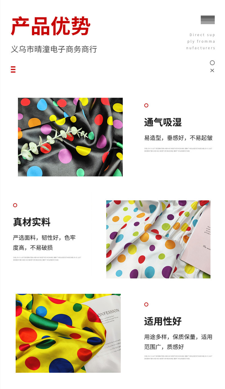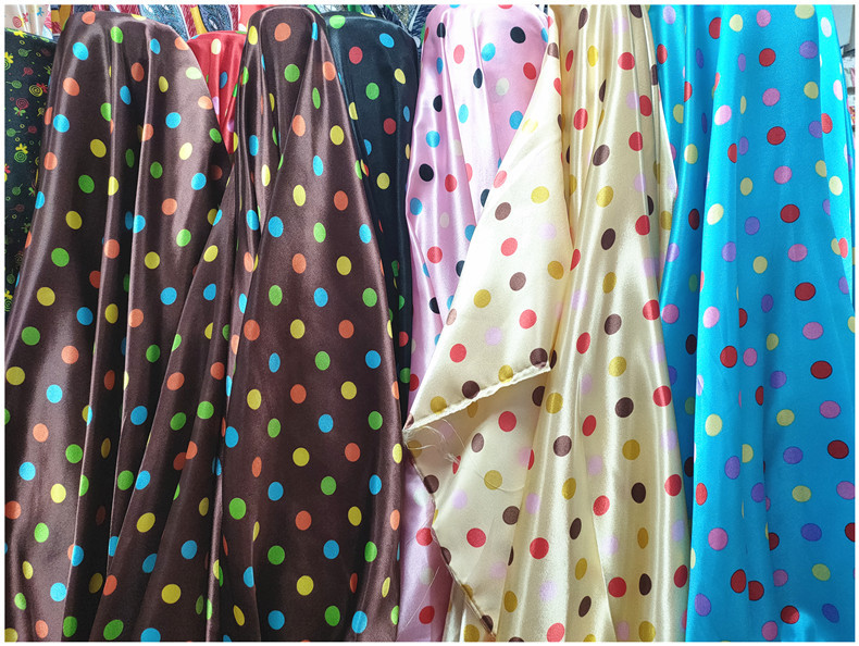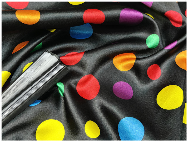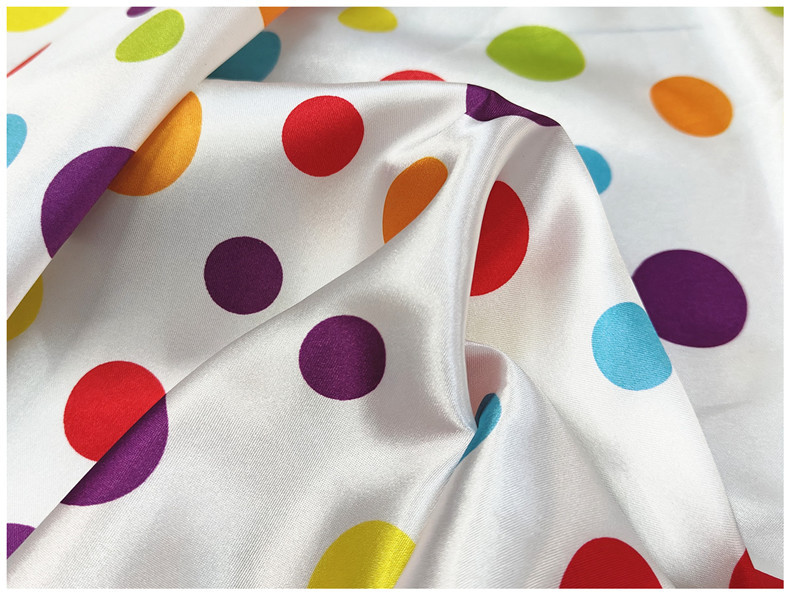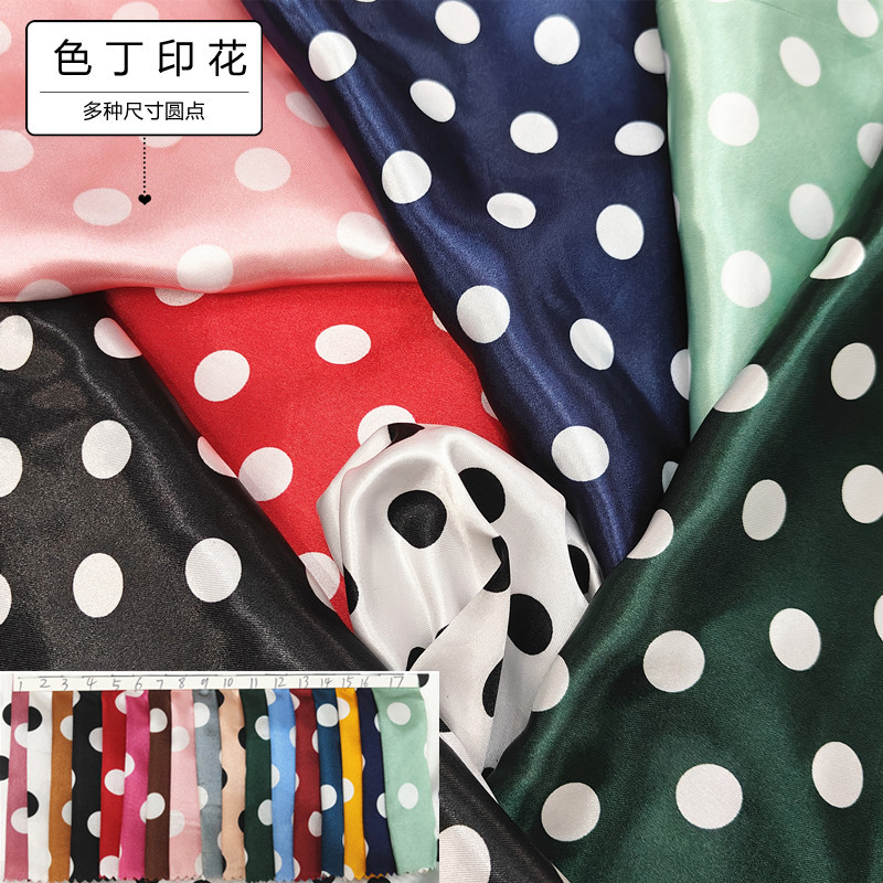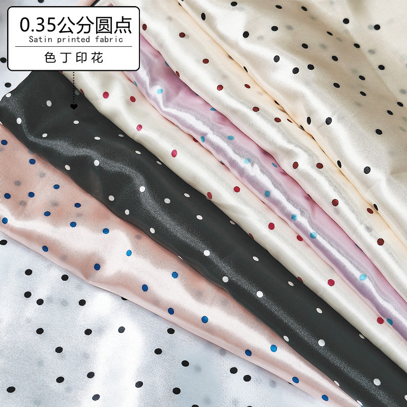 新品0.35公分圆点印花面料 色丁仿真丝布 服装里布丝巾头饰布料