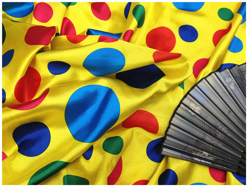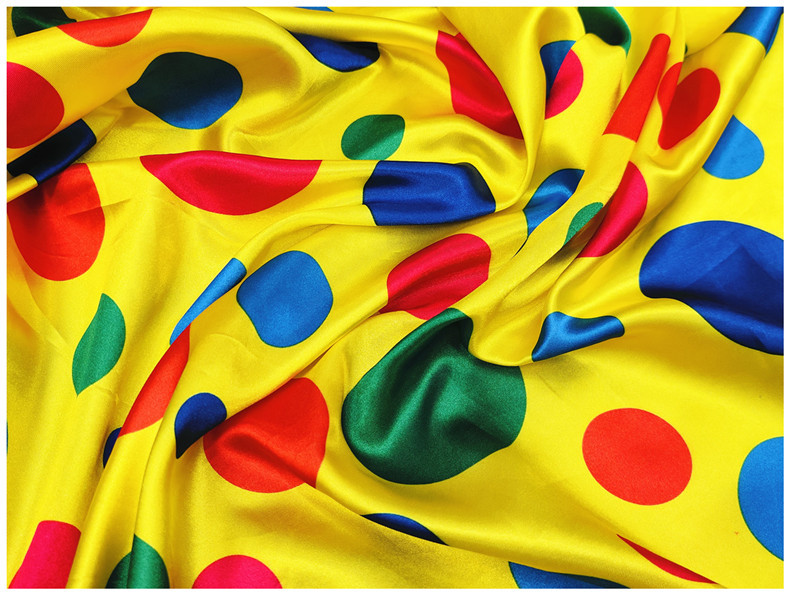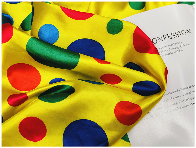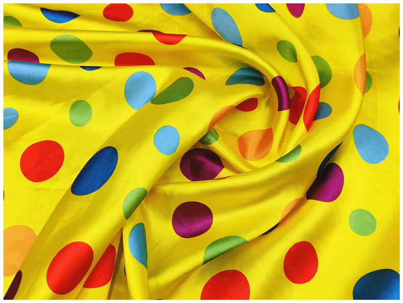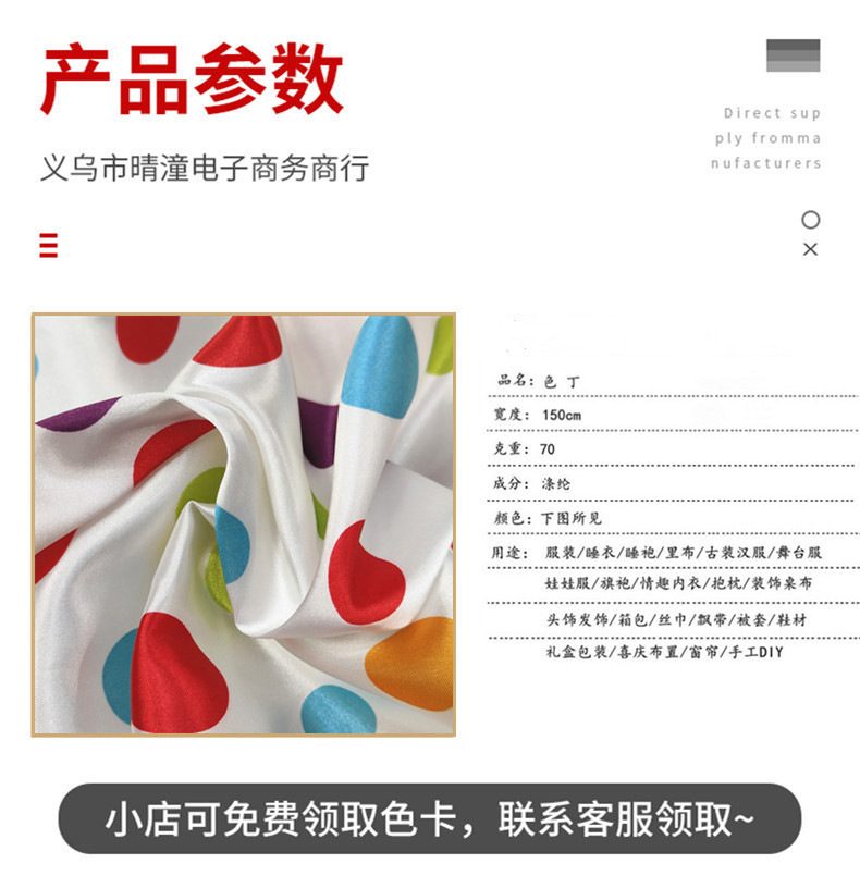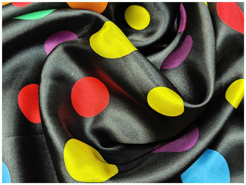 新品0.35公分圆点印花面料 色丁仿真丝布 服装里布丝巾头饰布料