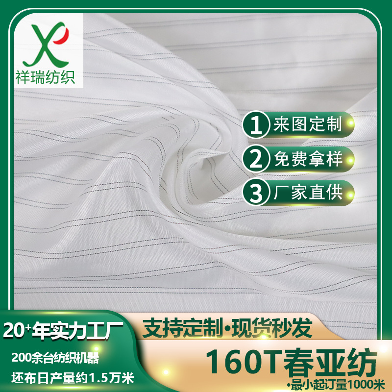 厂家直销现货批发160T全涤黑丝竖条纹半弹春亚纺内衬口袋布
