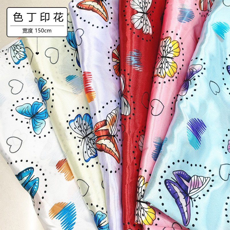 スポットポリエステル花柄サテンプリント生地キルトカバーバッグシルクスカーフリボン帽子衣類裏地生地