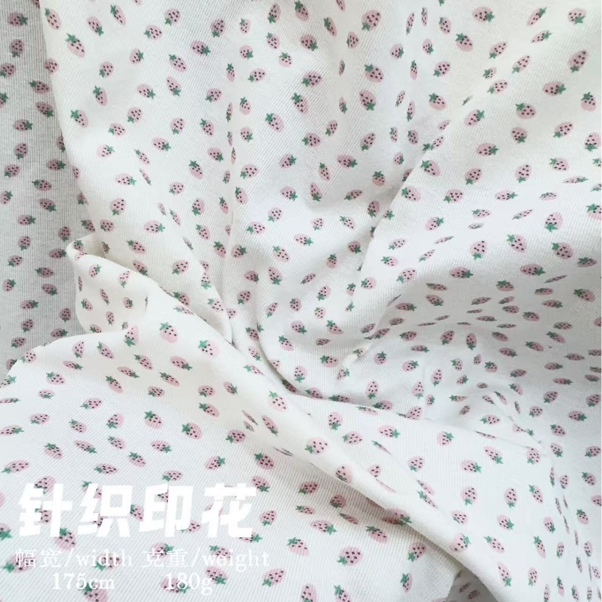 春新品印花针织服饰面料布匹工艺弹力草莓碎花小清新布料做衣服装
