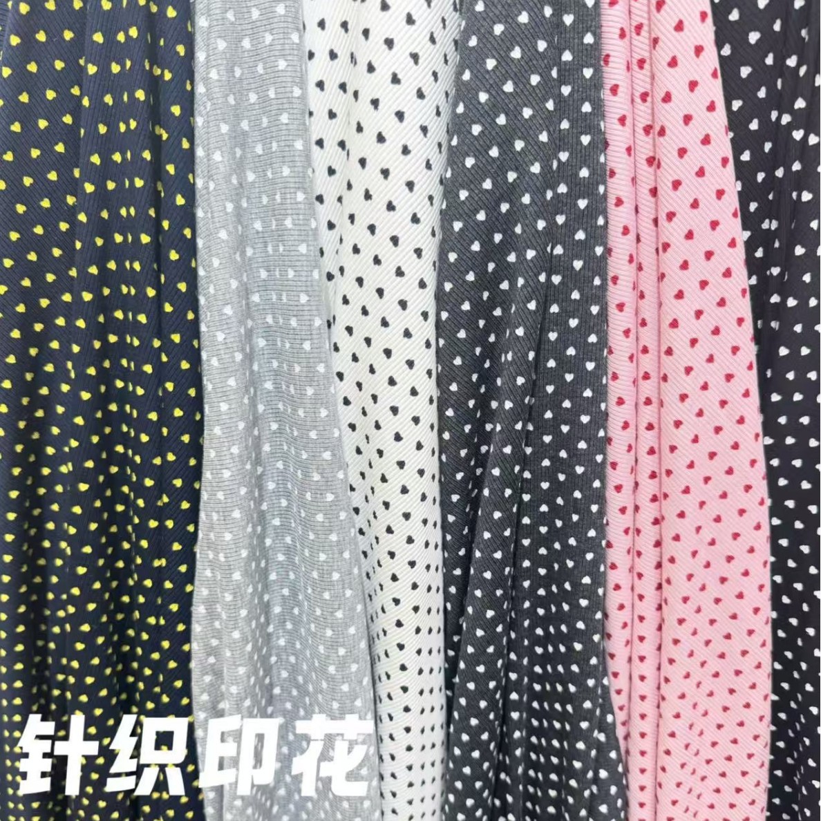 2026早春印花针织服装面料布匹工艺弹力打底爱心布料做衣服饰批发