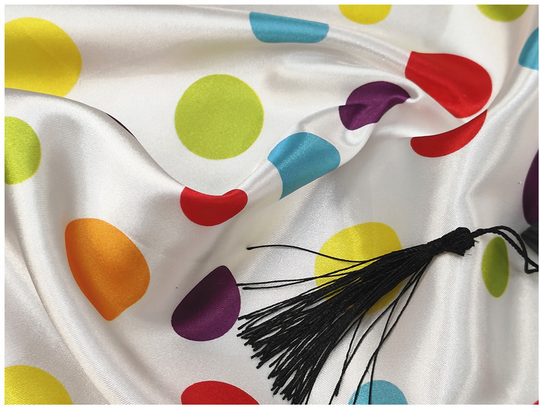 现货1.5公分圆点面料 涤纶波点色丁印花布 服装内衬丝巾飘带头饰