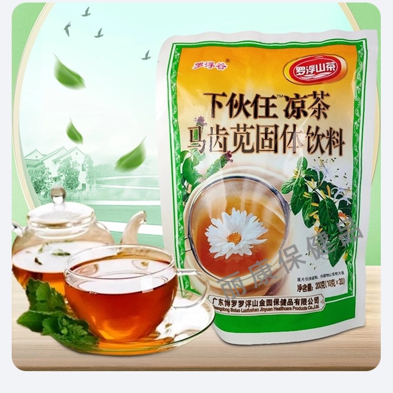 広東の羅浮山の羅浮谷の冷たいお茶の下で仲間が馬の歯のアマランスの夏の枯草の固体の飲み物を食べて夜更かしして火をかけます。