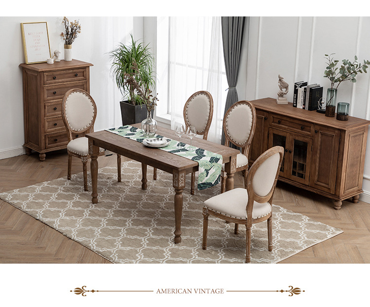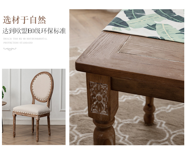 アメリカの田舎のレトロな食卓のフランス式のウェディングドレスの影楼は古い実木の民宿の長いタイプのテーブルのヨーロッパ式の彫刻のテーブルと椅子をします。