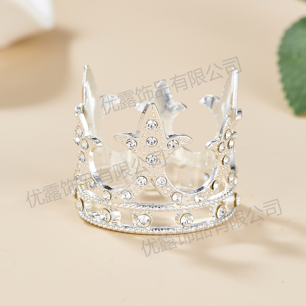 クロスボーダー花飾り合金小クラウンドリル五角星ミニ円形誕生日ケーキ王冠置物