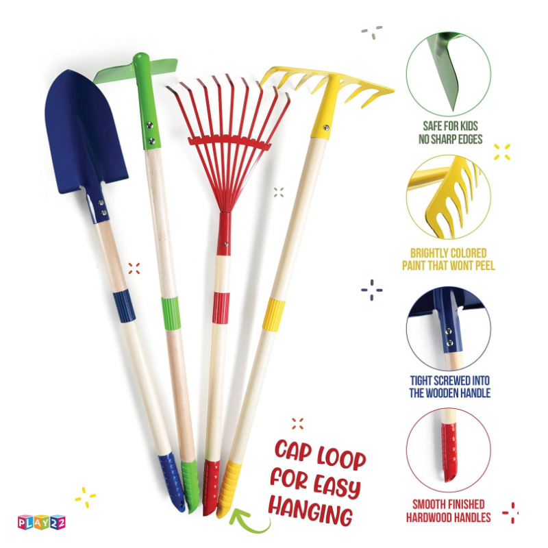 国境を越えた児童園林シャベル熊手鍬シャベル園芸土を掘って砂を掘る屋外砂浜で園芸栽培をする