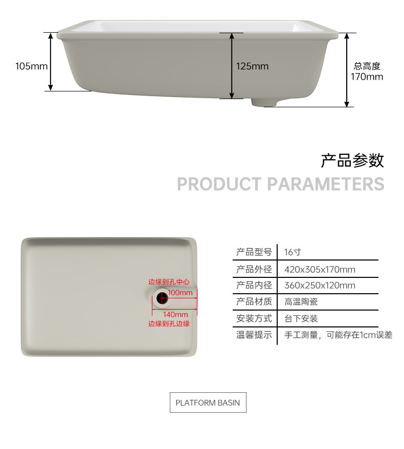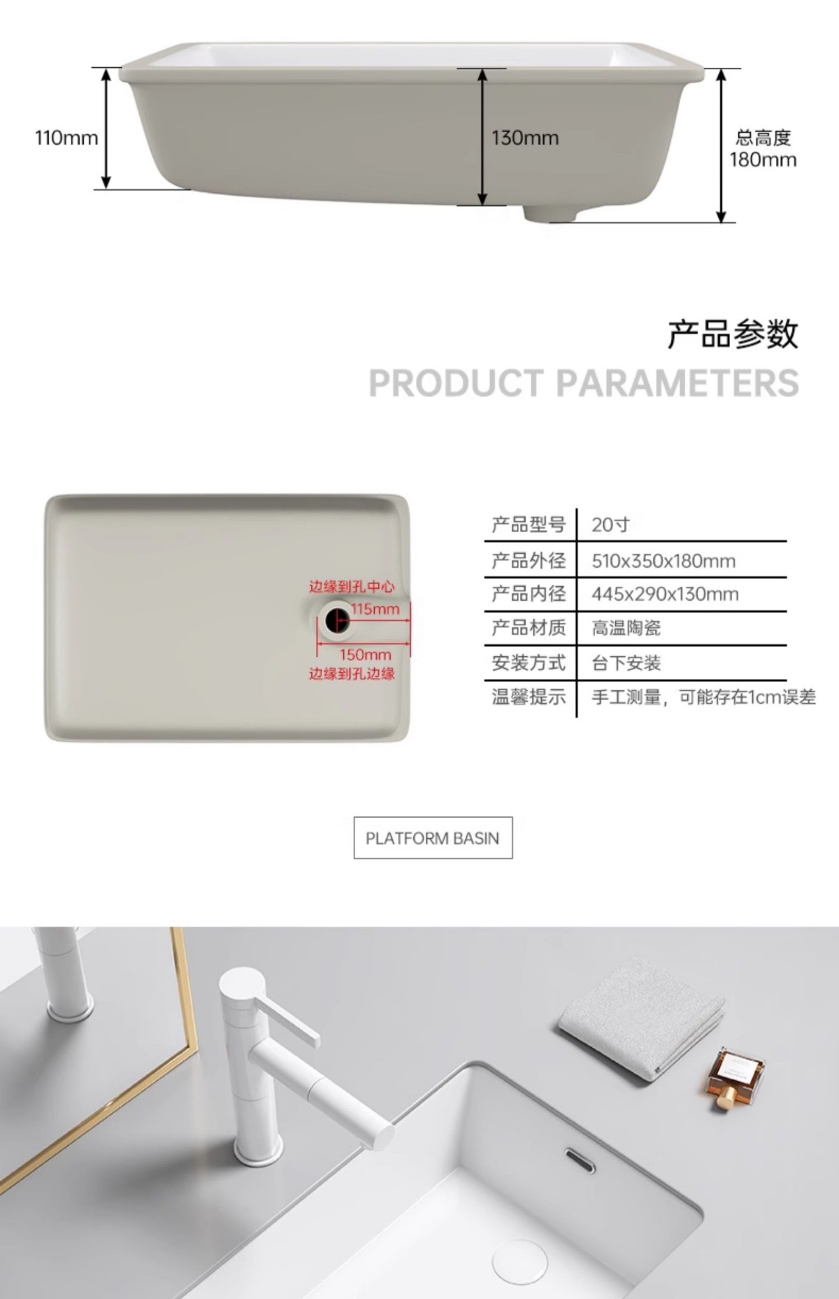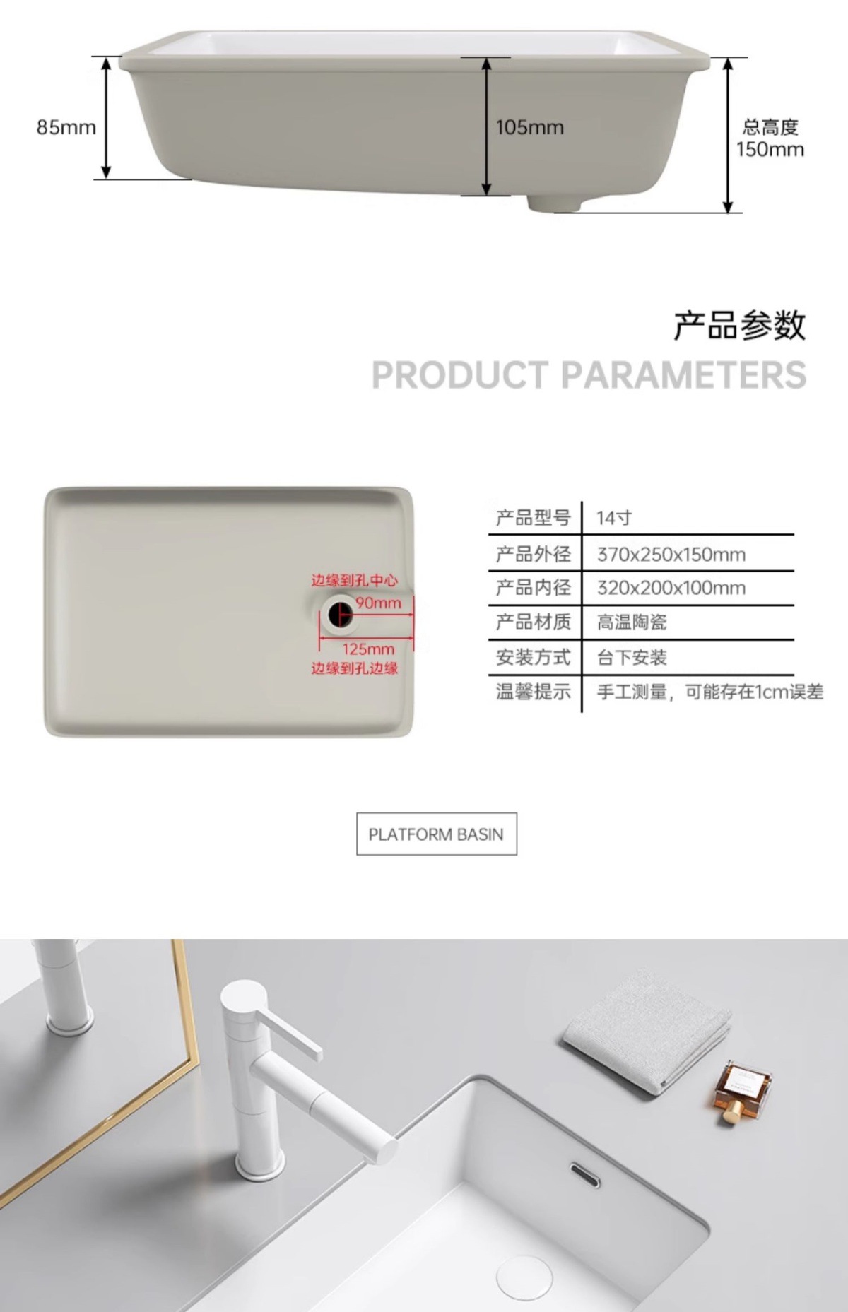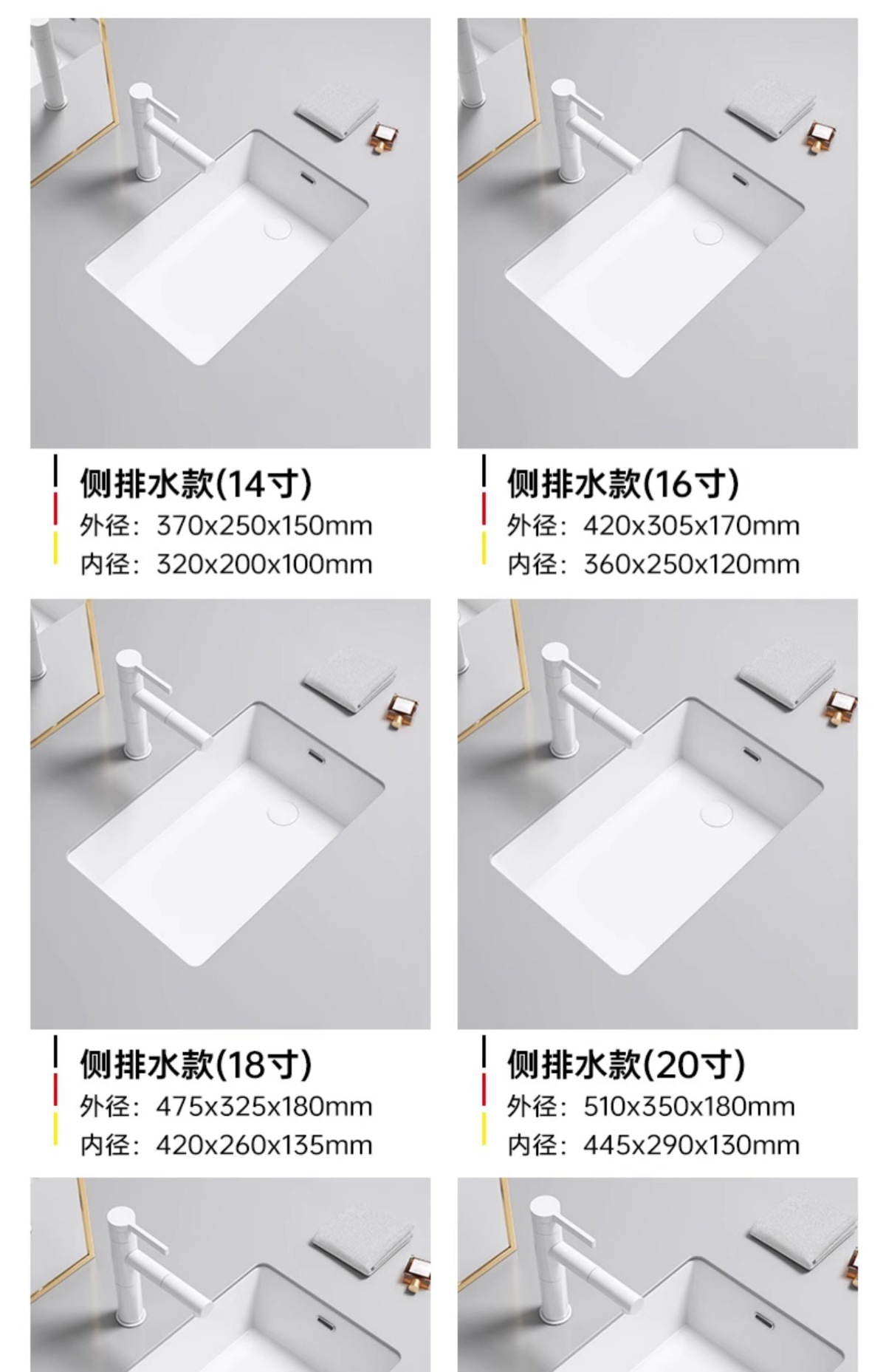 左右側排水縦装台下盆ベランダ洗濯洗面器陶磁器埋め込み式小サイズ洗面器単盆