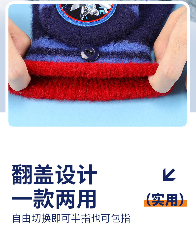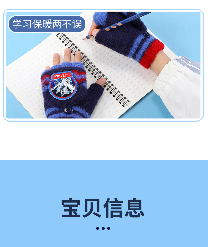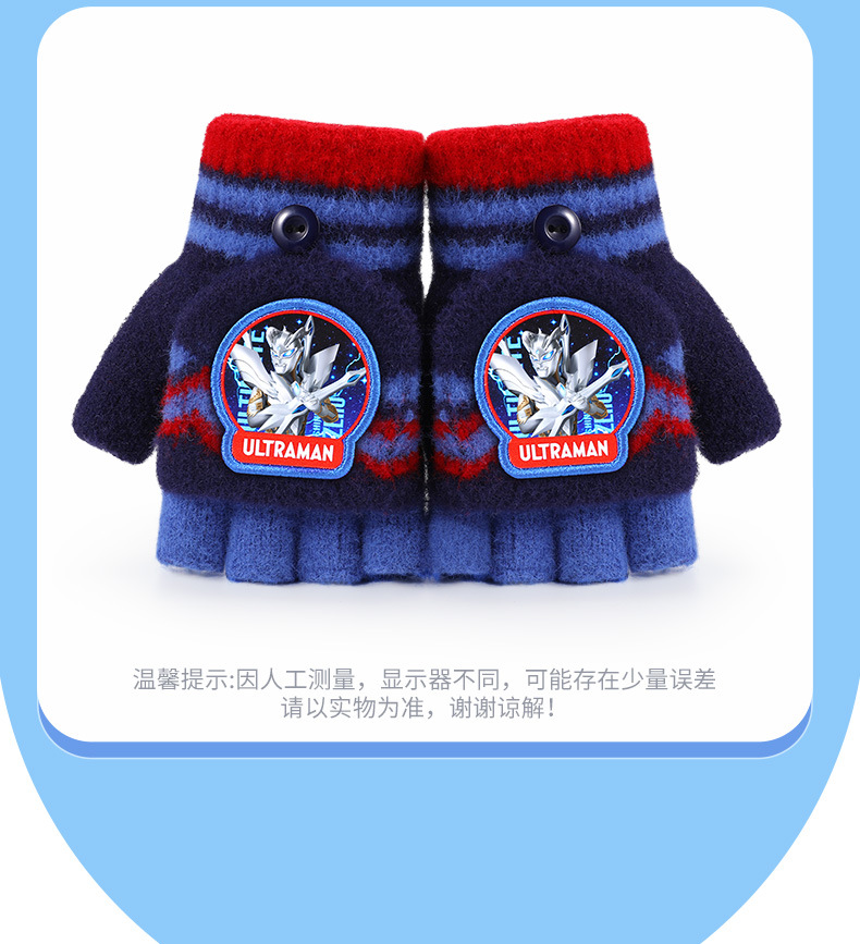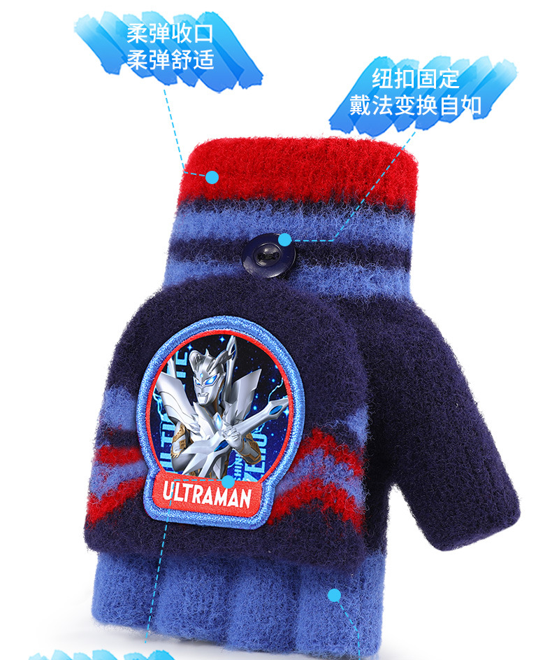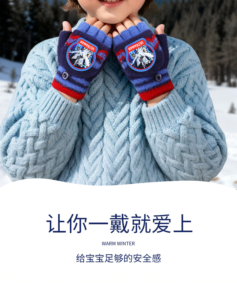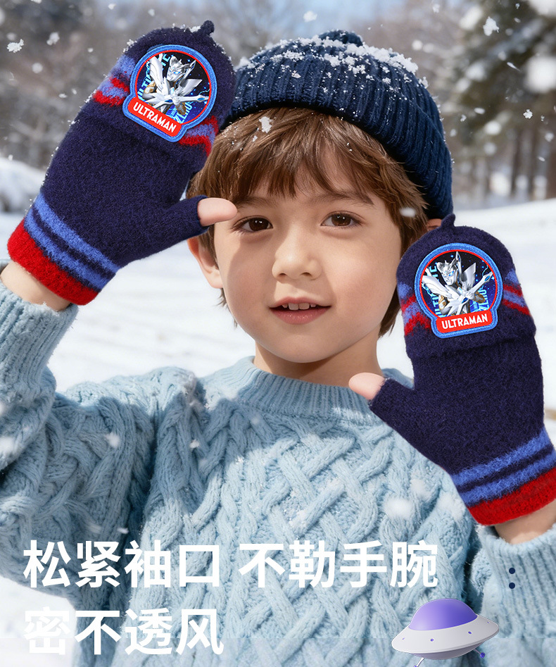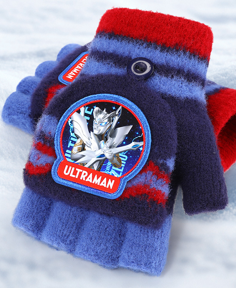 ウルトラマン子供ニット手袋秋冬保温男の子半指カバー毛糸手袋赤ちゃん学生手袋
