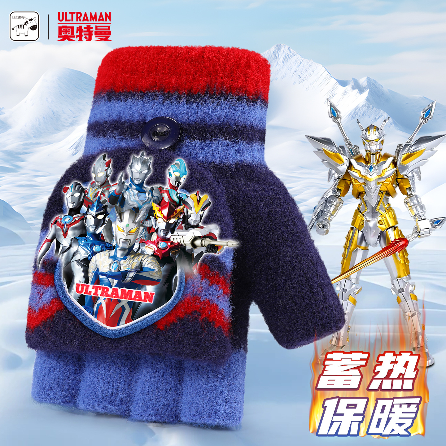 奥特曼手套2025冬季新款儿童手套男童潮酷卡通保暖半指翻盖手套