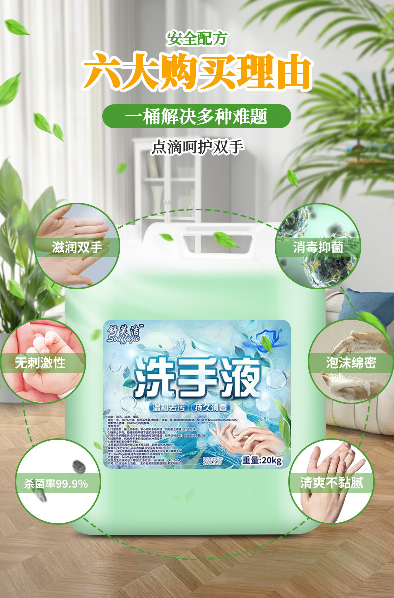第1位アロエ清香型手洗い液家庭用商用大桶10斤抗菌殺菌留香卸売り