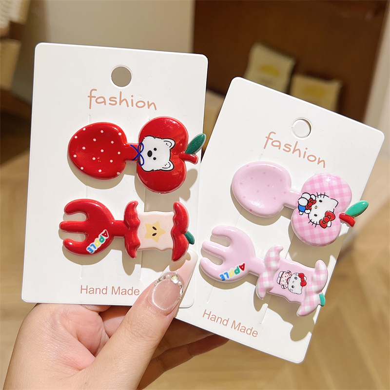 甜美可爱苹果发夹少女卡通小狗刘海趣味叉子发卡勺子侧边鸭嘴发饰