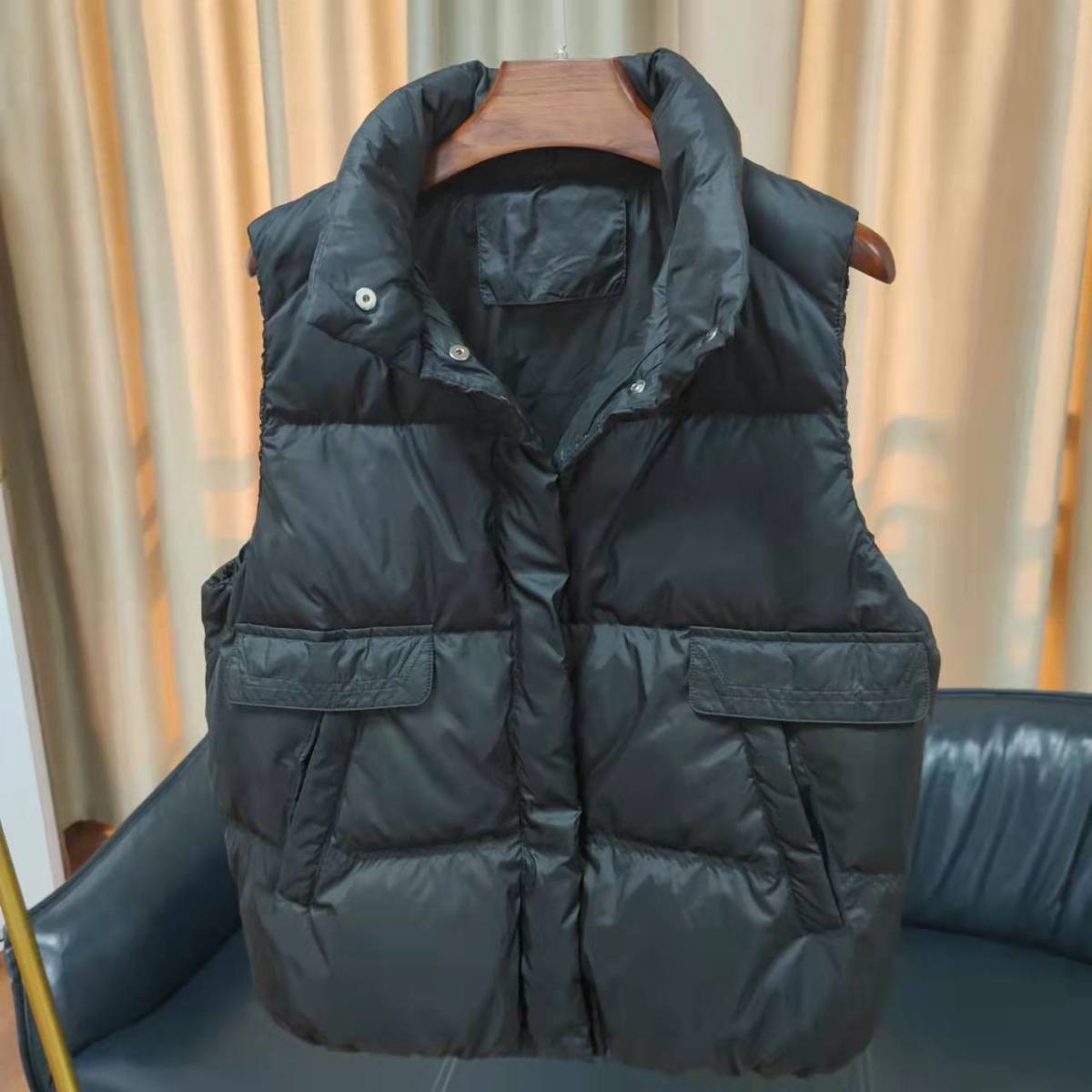 韓国風スタンドカラーのダウンベスト、シングルボタン、ノースリーブ、ホワイトダックダウン、外で着用可能