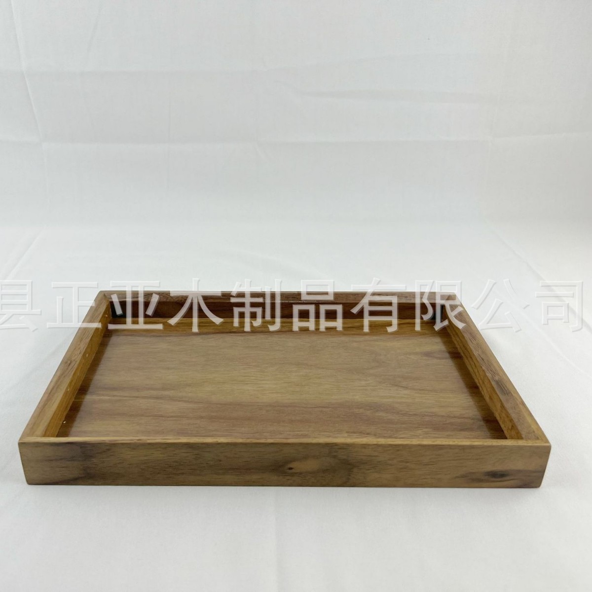 アカシアの木のトレーの果物のトレーの実木は取っ手のトレーの長方形の直角の取っ手のお茶の皿のお菓子の皿を持ちます。