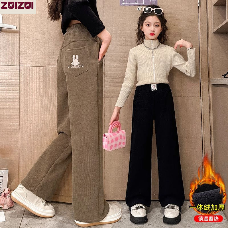 女の子とベルベットのカジュアルなズボン秋の冬の2024の新しい大人のズボンの女の子の子供の一体のベルベットのズボンのファッション