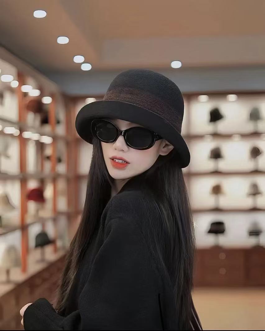 2024秋冬の新型の優雅な気質は縁を巻いて漁師の帽子の子供の英倫風の気質を巻いて優雅に顔の小さい礼帽を現します。