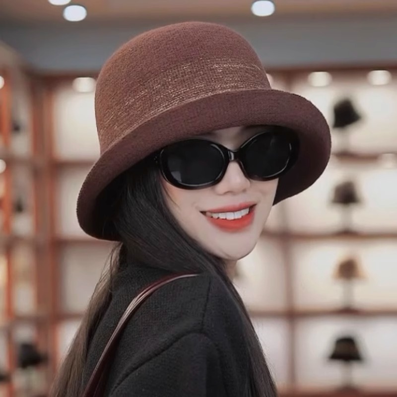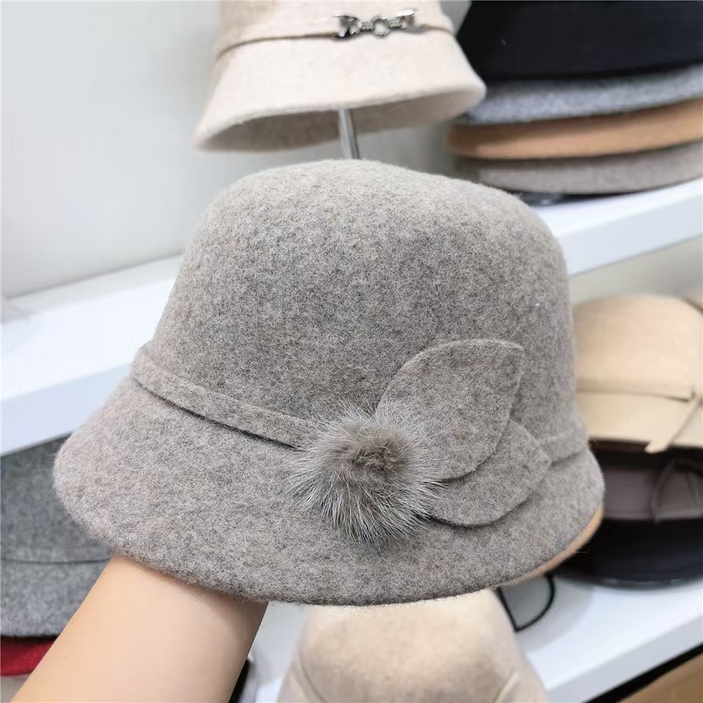 帽子女秋冬加绒毛呢渔夫帽羊毛气质盆帽冬天户外防风保暖礼帽时尚
