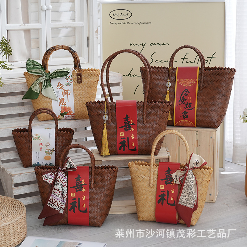 新しい中国風のブライズメイドのお土産編みバスケット結婚式年次総会新築祝い1歳の誕生日ショップギフト包装ハンドバッグ