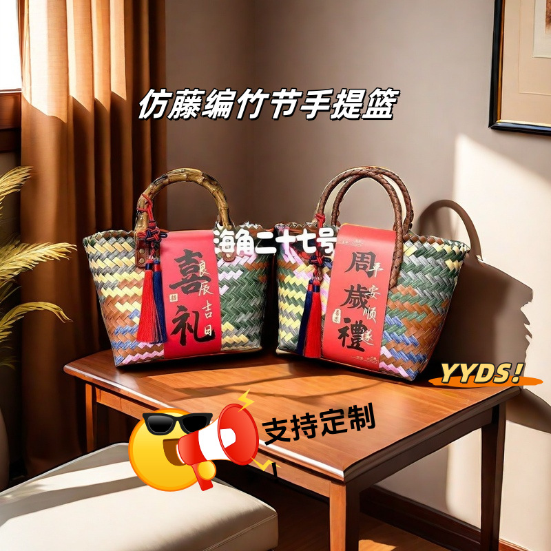 編みバッグ、ギフトバッグ、新築祝い、満月祝い、春節ギフトボックス、編みかご、ギフトバスケット、お祝いギフト、祝賀品