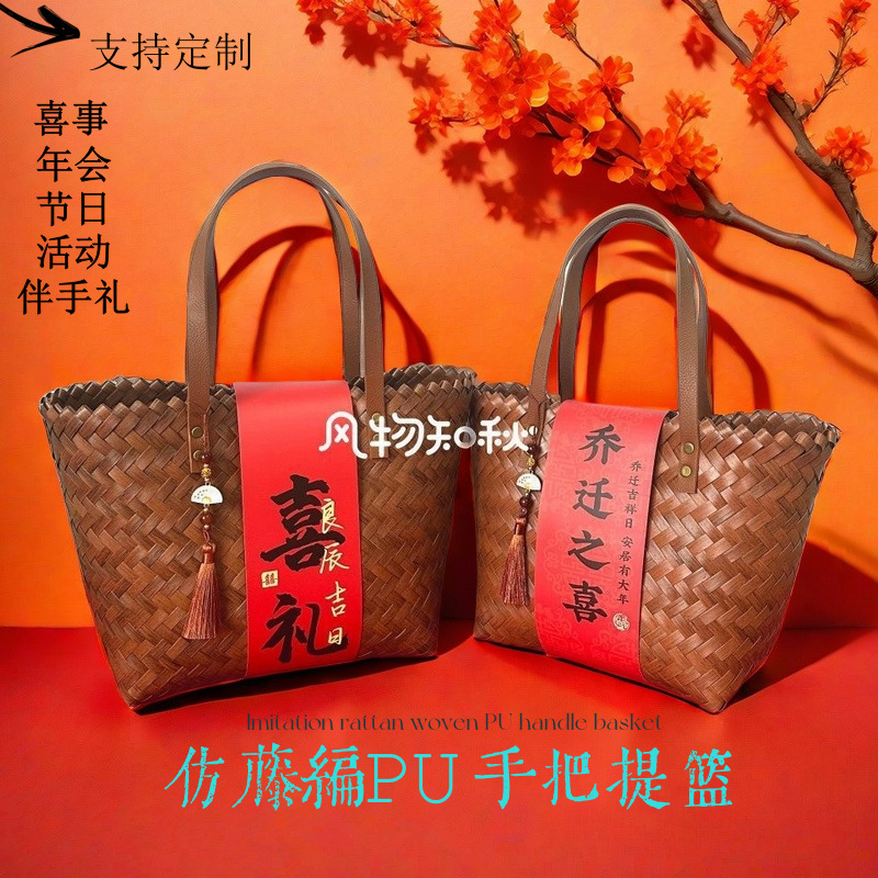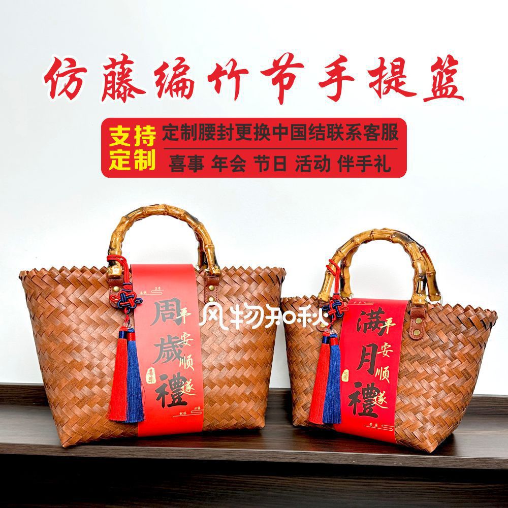 新しい中国風模造籐編みバスケットポータブルバスケットブライズメイド記念品結婚式ギフト包装満月誕生日新築祝い