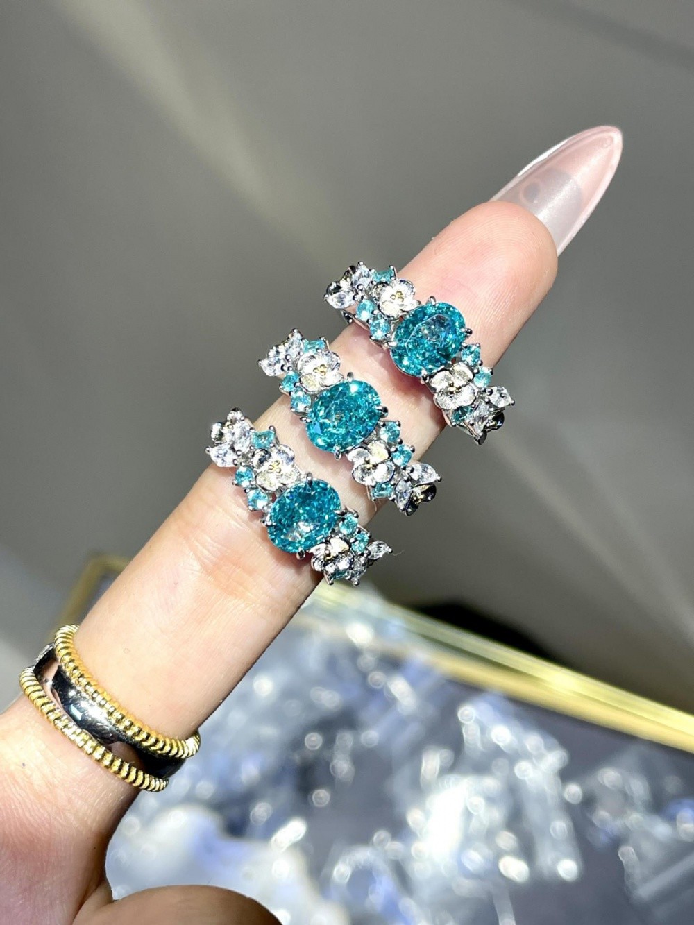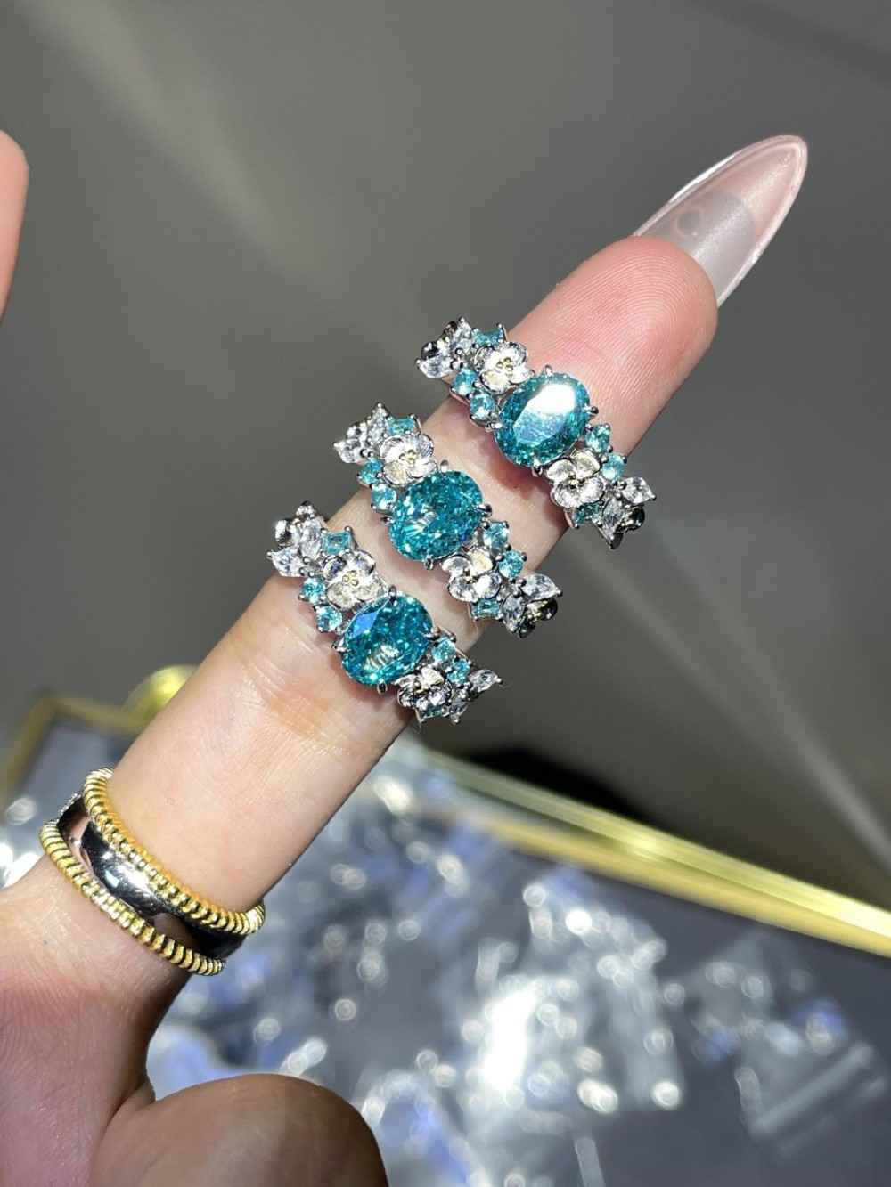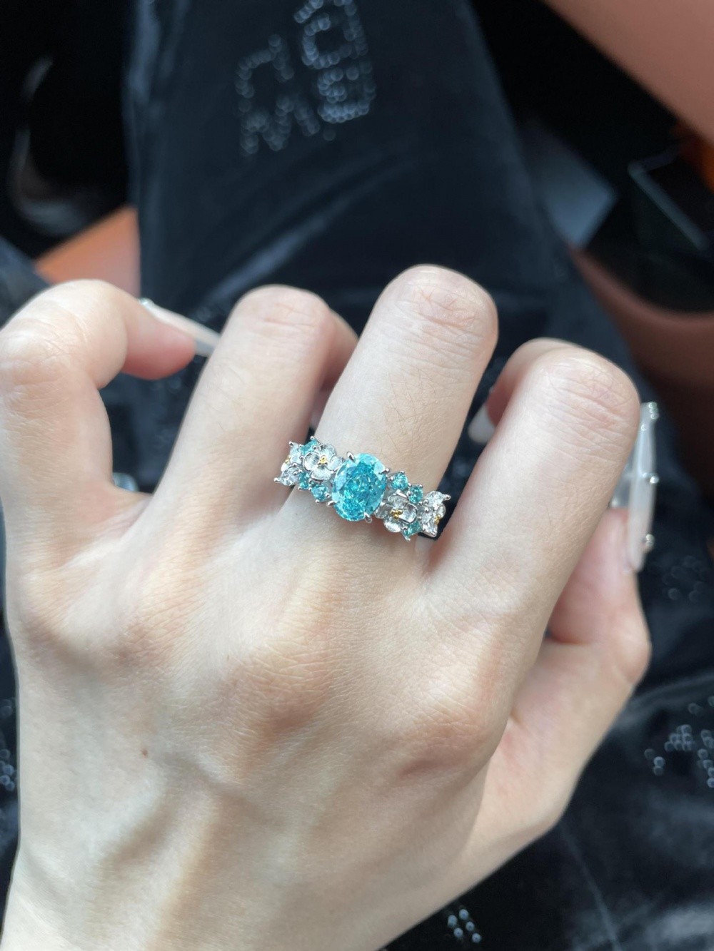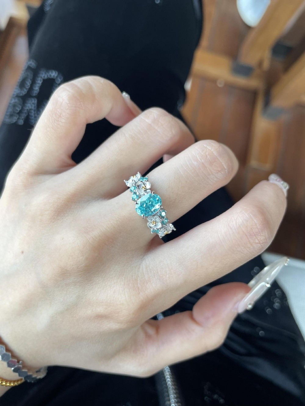 豪華で精巧な青いジルコンの指輪の女性insは贅沢な大衆の気質の設計の指輪に合わせて高級感の指輪を使います。