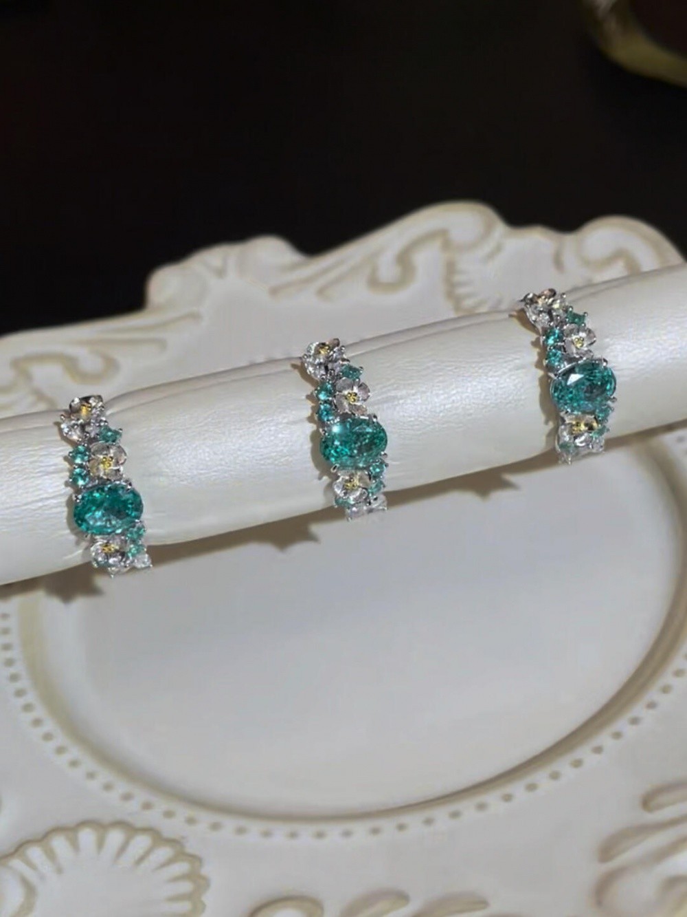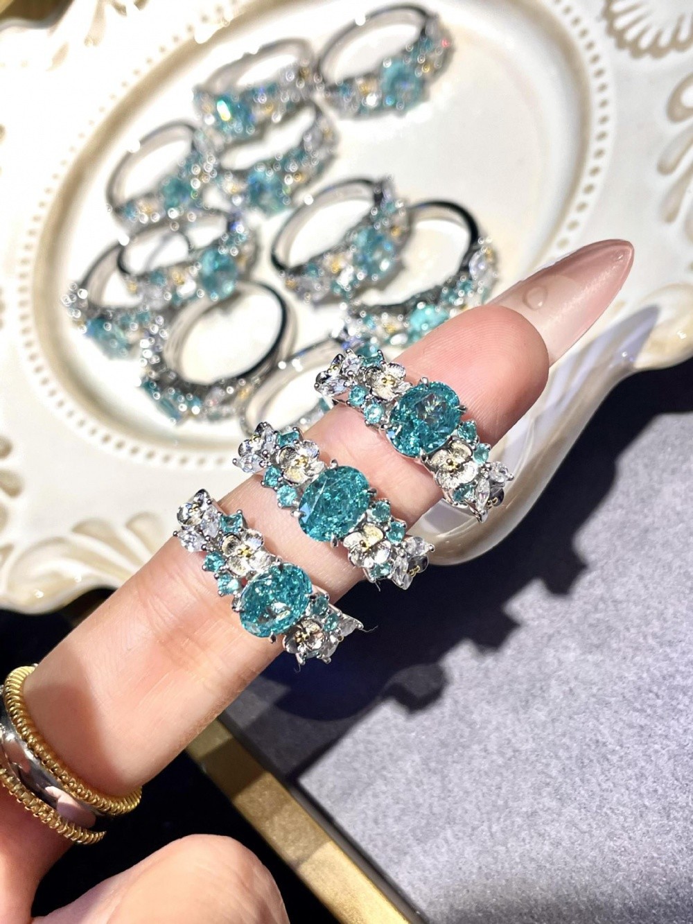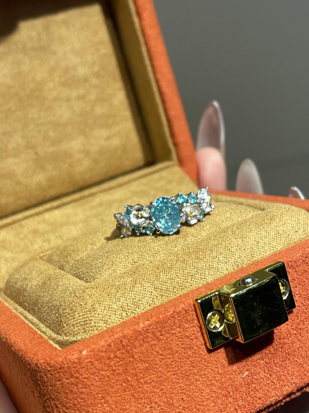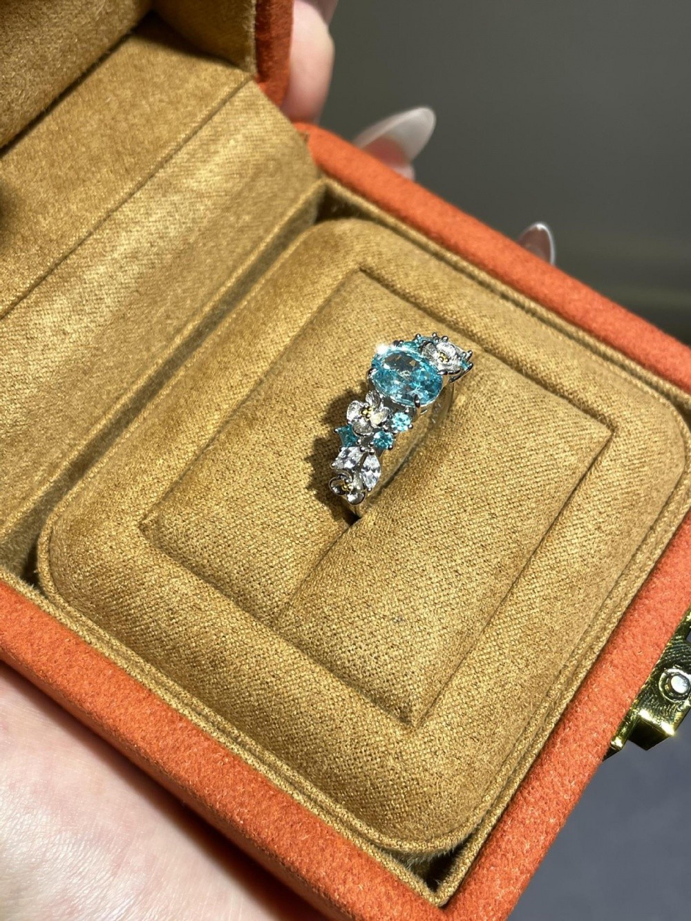 豪華で精巧な青いジルコンの指輪の女性insは贅沢な大衆の気質の設計の指輪に合わせて高級感の指輪を使います。