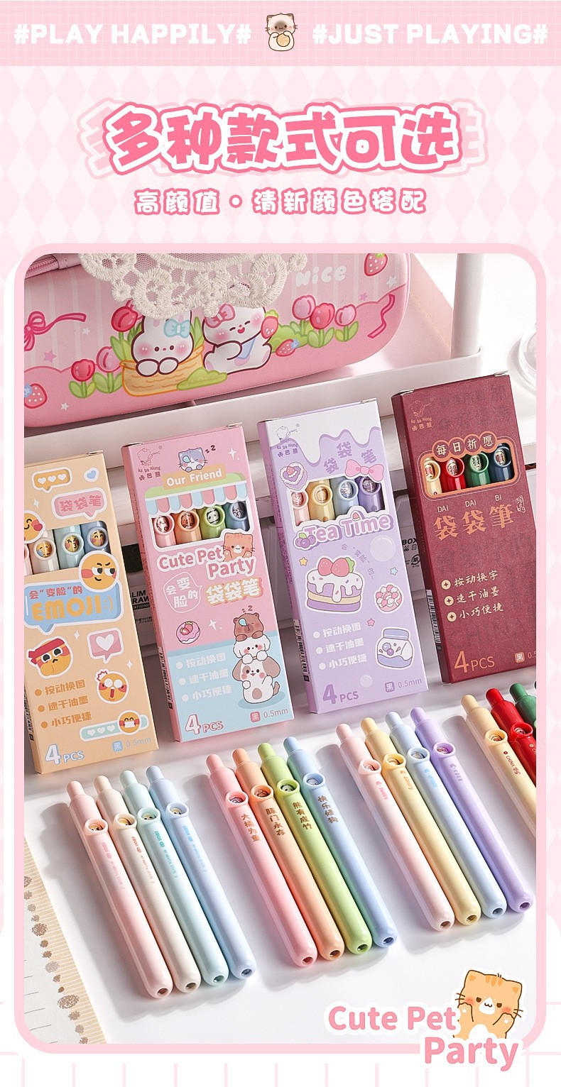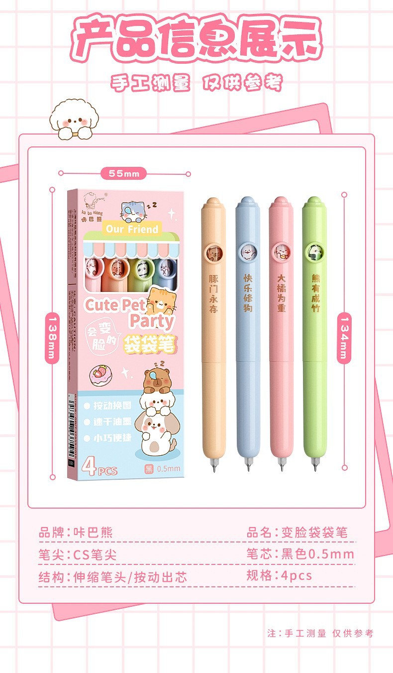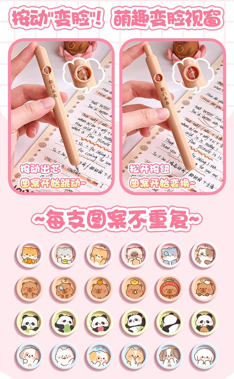 咔巴熊躲猫猫趣味按动笔 会变脸的笔学生ins风高颜值创意中性笔速