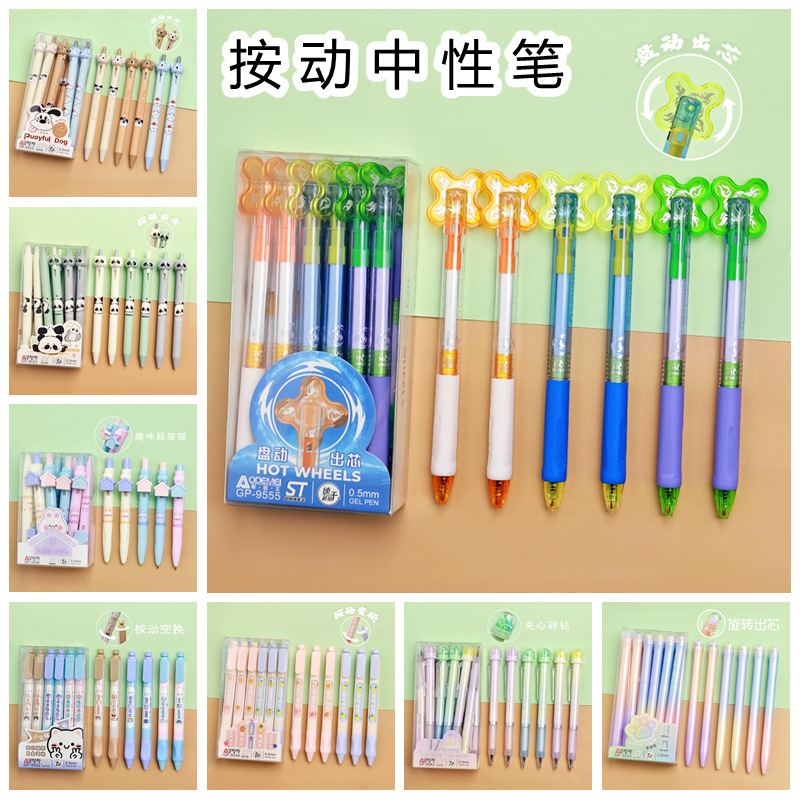 按动中性笔景观笔创意文具按动中性笔学生考试书写笔0.5mm黑色笔