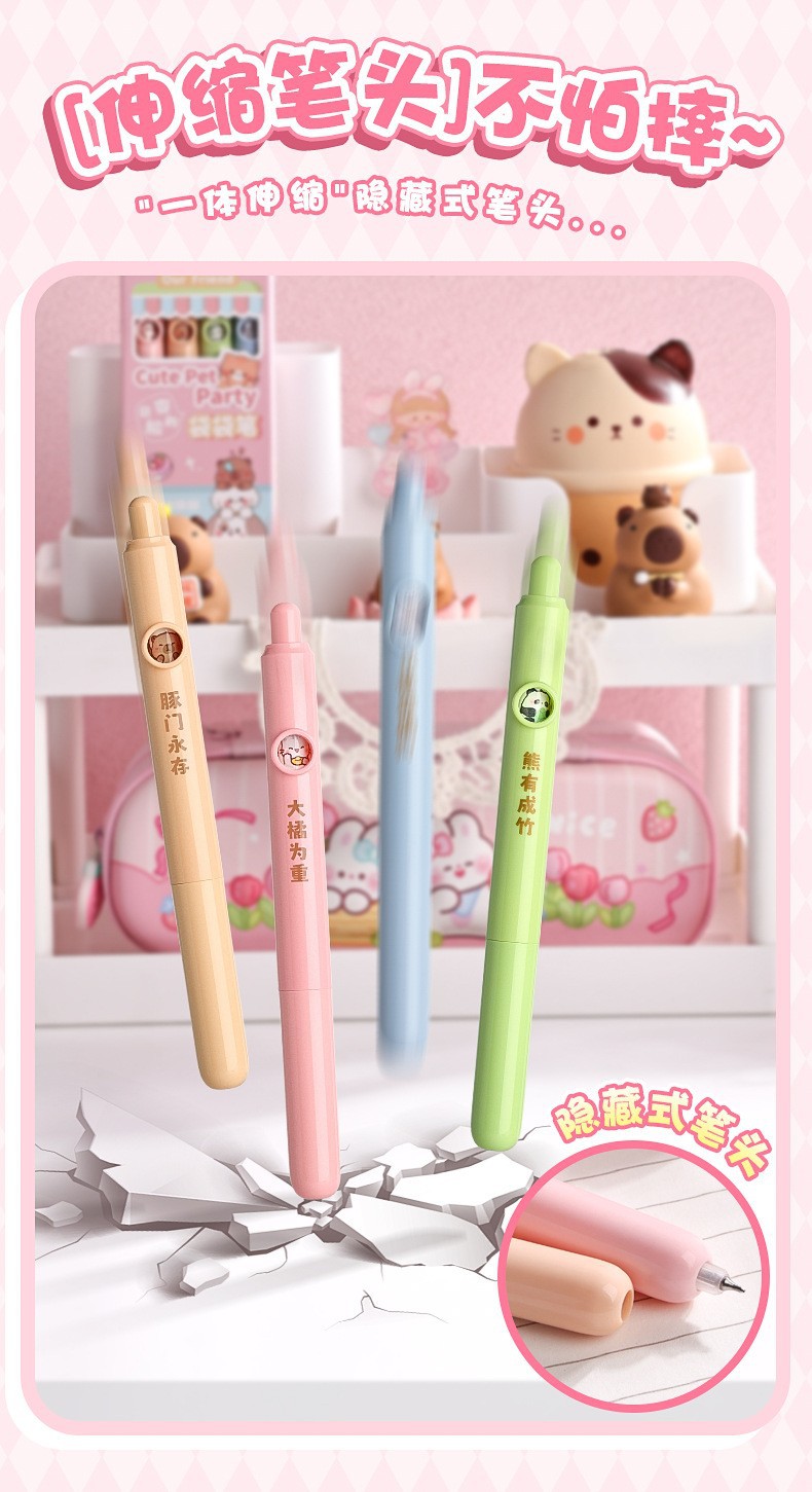 卡皮巴拉跳跳口袋中性笔CS头速干刷题笔变脸兜兜笔学生按动中性笔