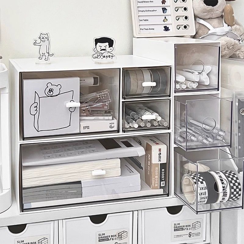 デスクトップ収納ボックス引き出し式化粧品学生寮文房具オフィス透明整理ボックスデスク棚