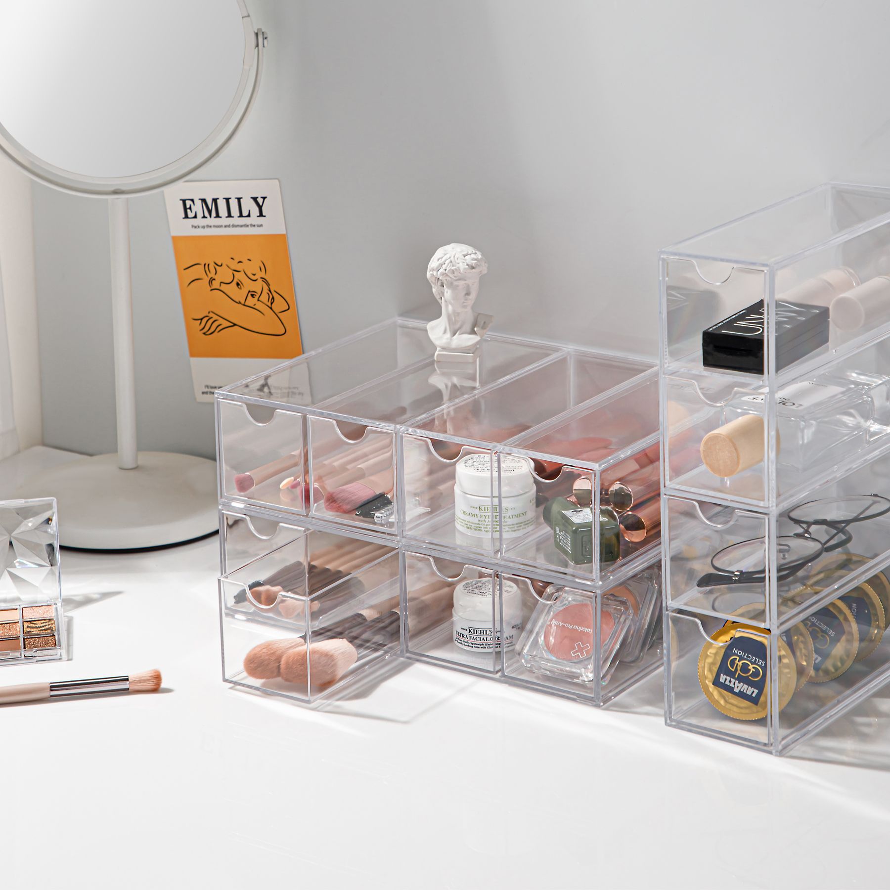 加厚大容量桌面抽拉式防尘收纳盒透明亚克力化妆品首饰储物盒
