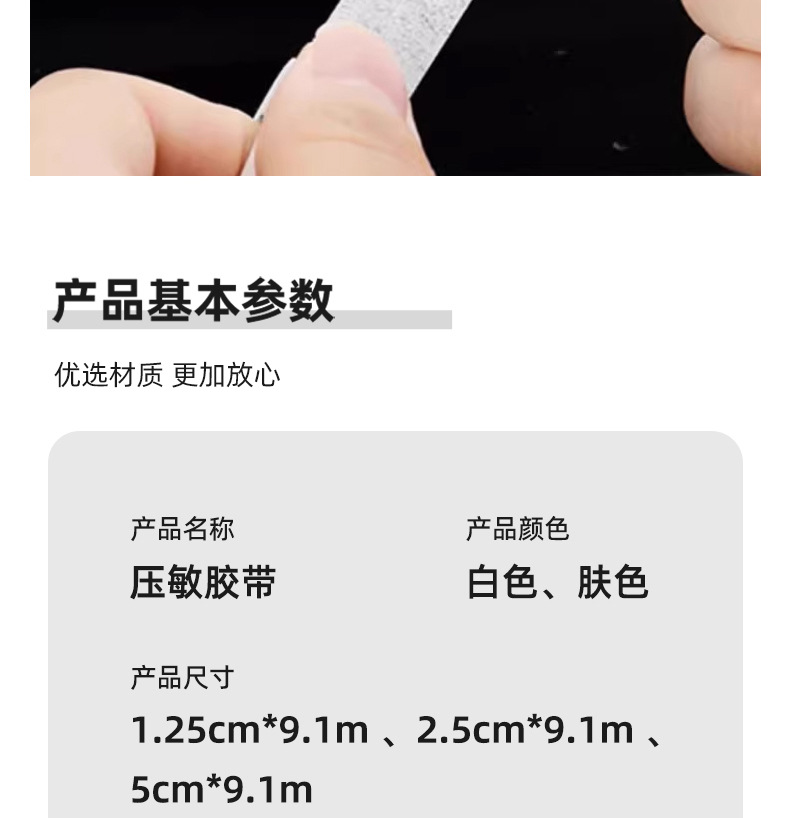 1.25×9.1m(白),2.5cm×9.1m(白),5cm×9.1m(白),1.25×9.1m(肌色),2.5cm×9.1m(肌色)