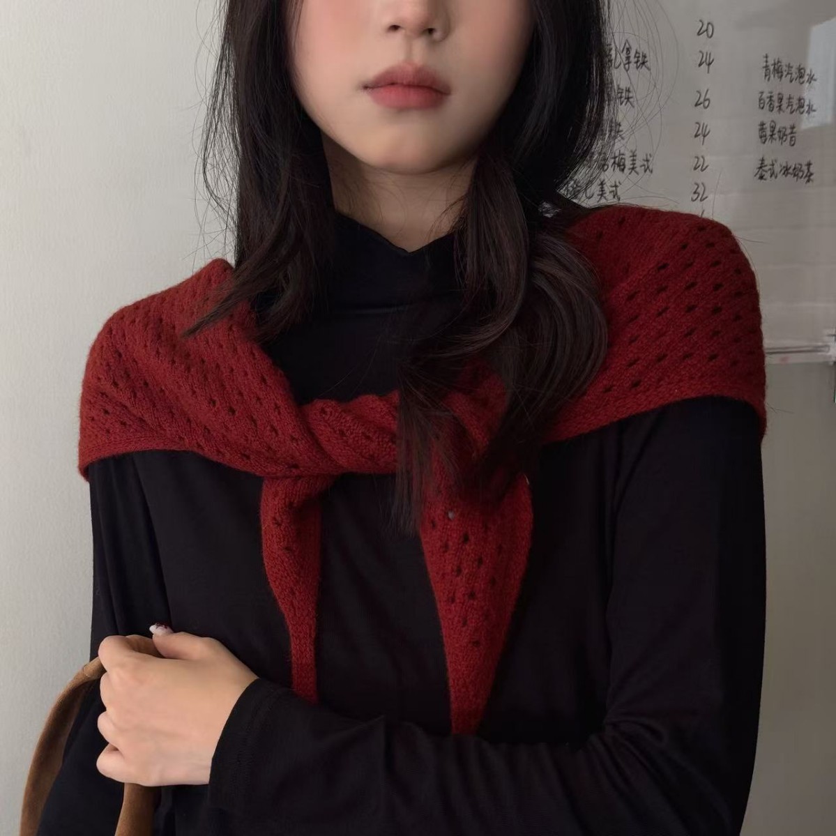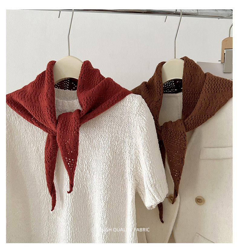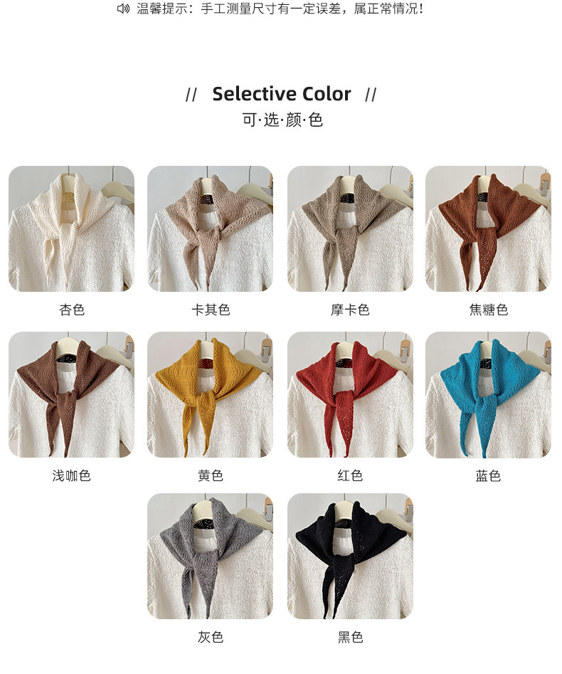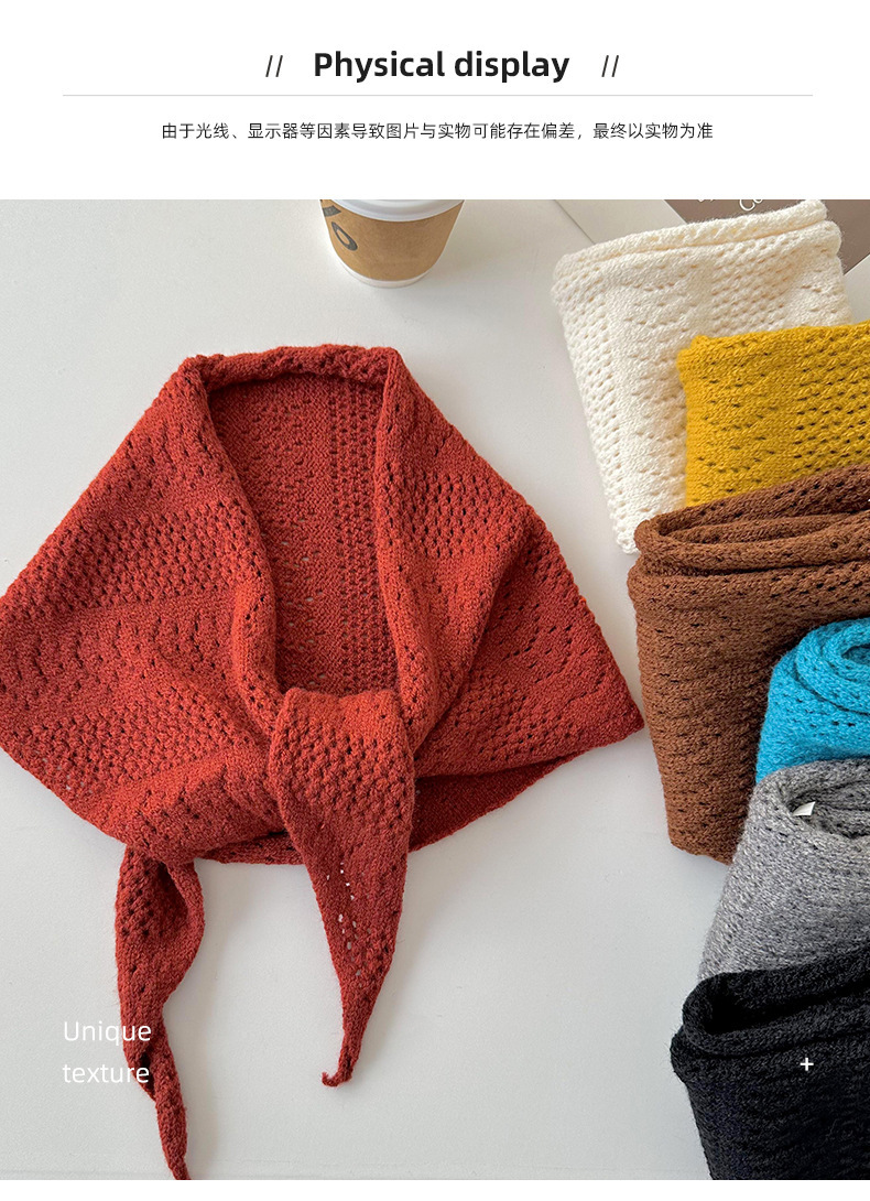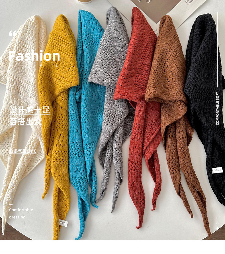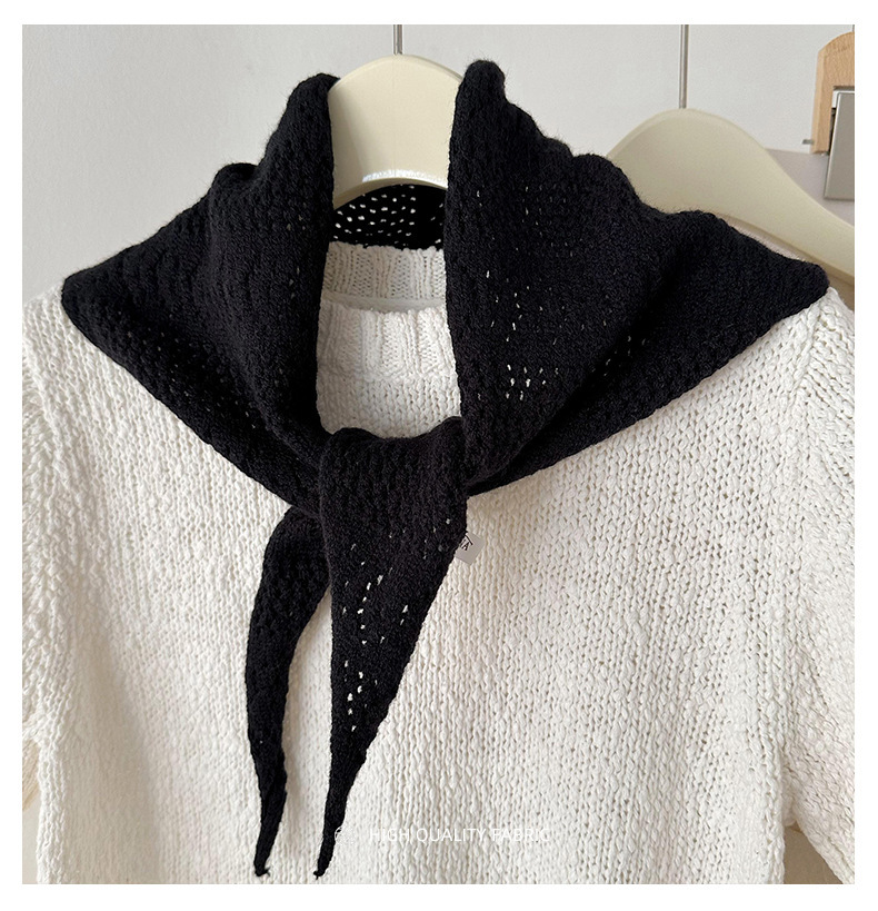 2025新款纯色针织镂空三角巾女秋冬季时尚百搭护颈围巾打结披肩