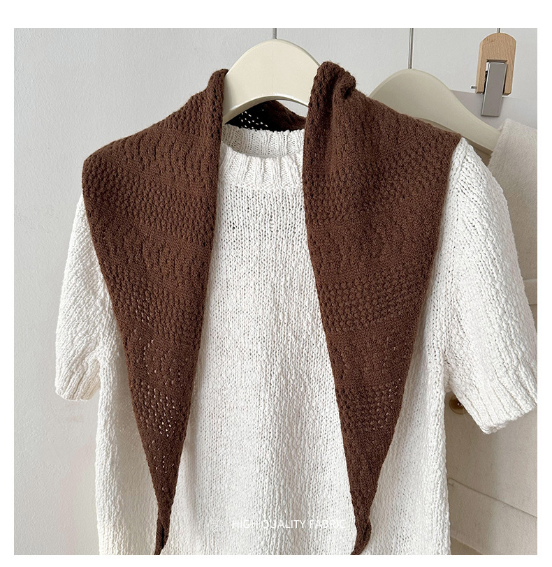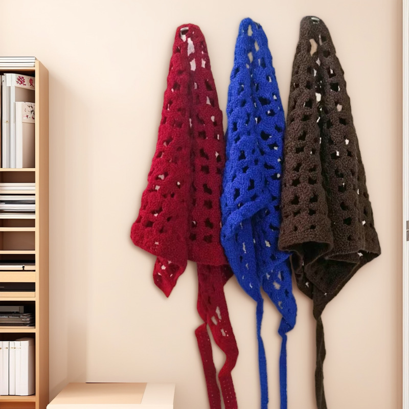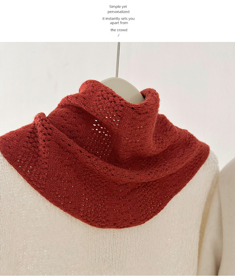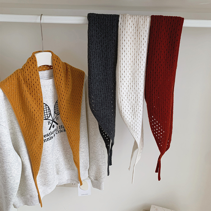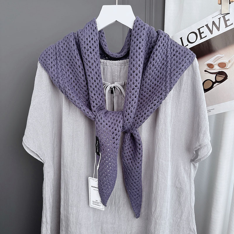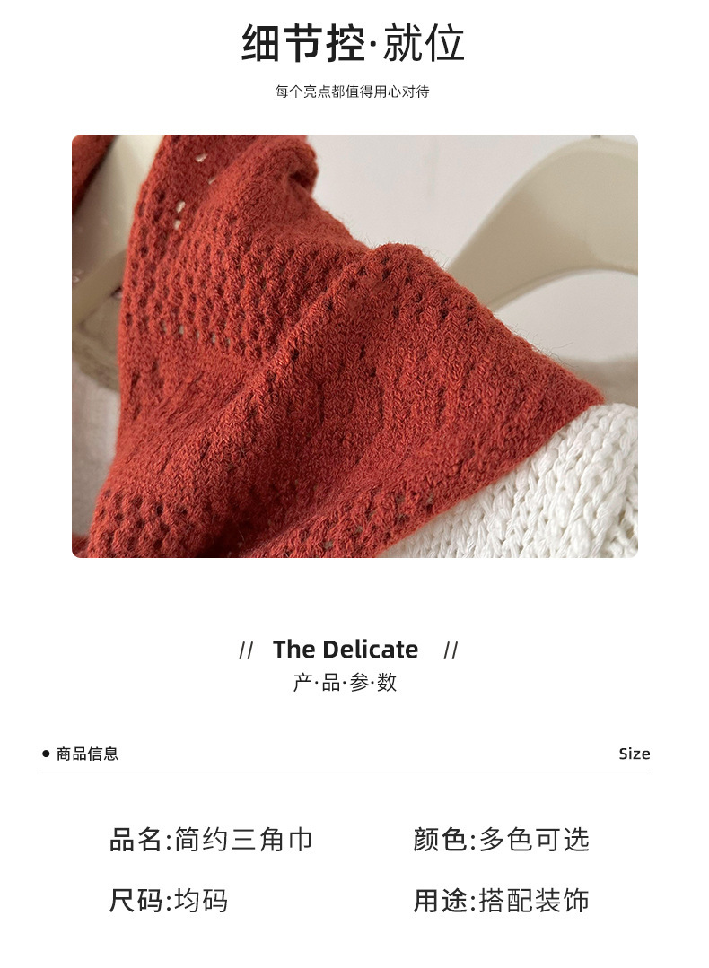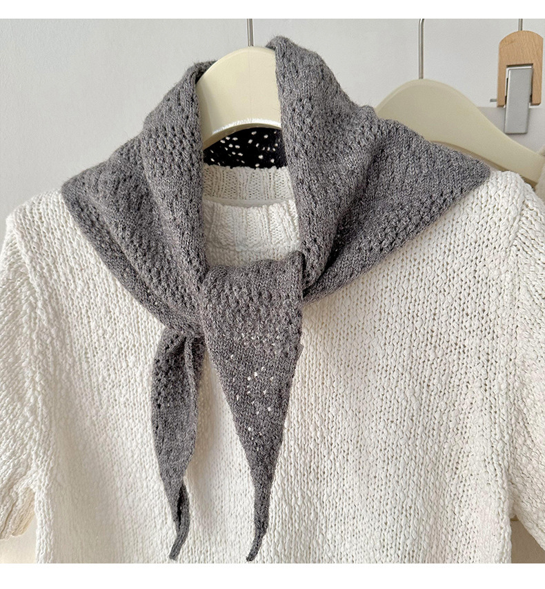 2025新款纯色针织镂空三角巾女秋冬季时尚百搭护颈围巾打结披肩