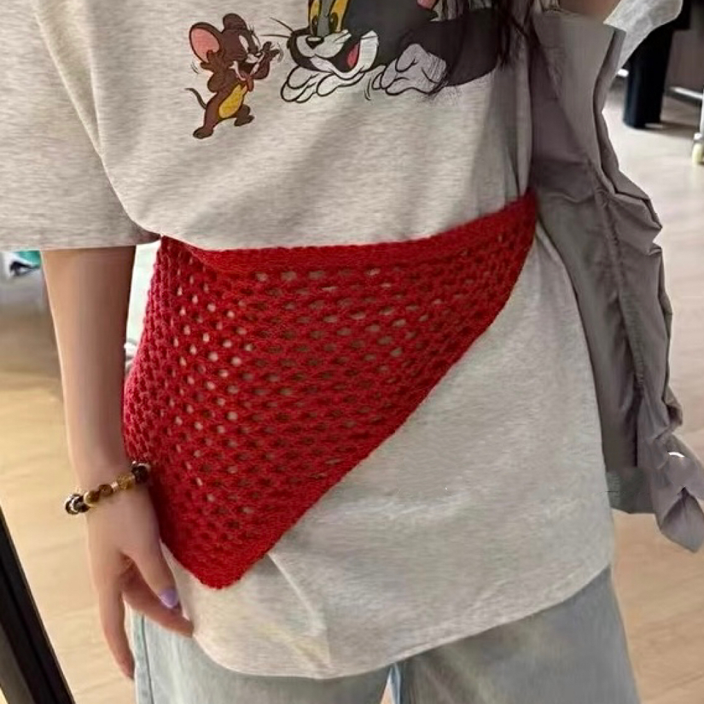 大版辣妹屁帘女新款手工钩织三角巾腰巾搭配多功能头巾发带