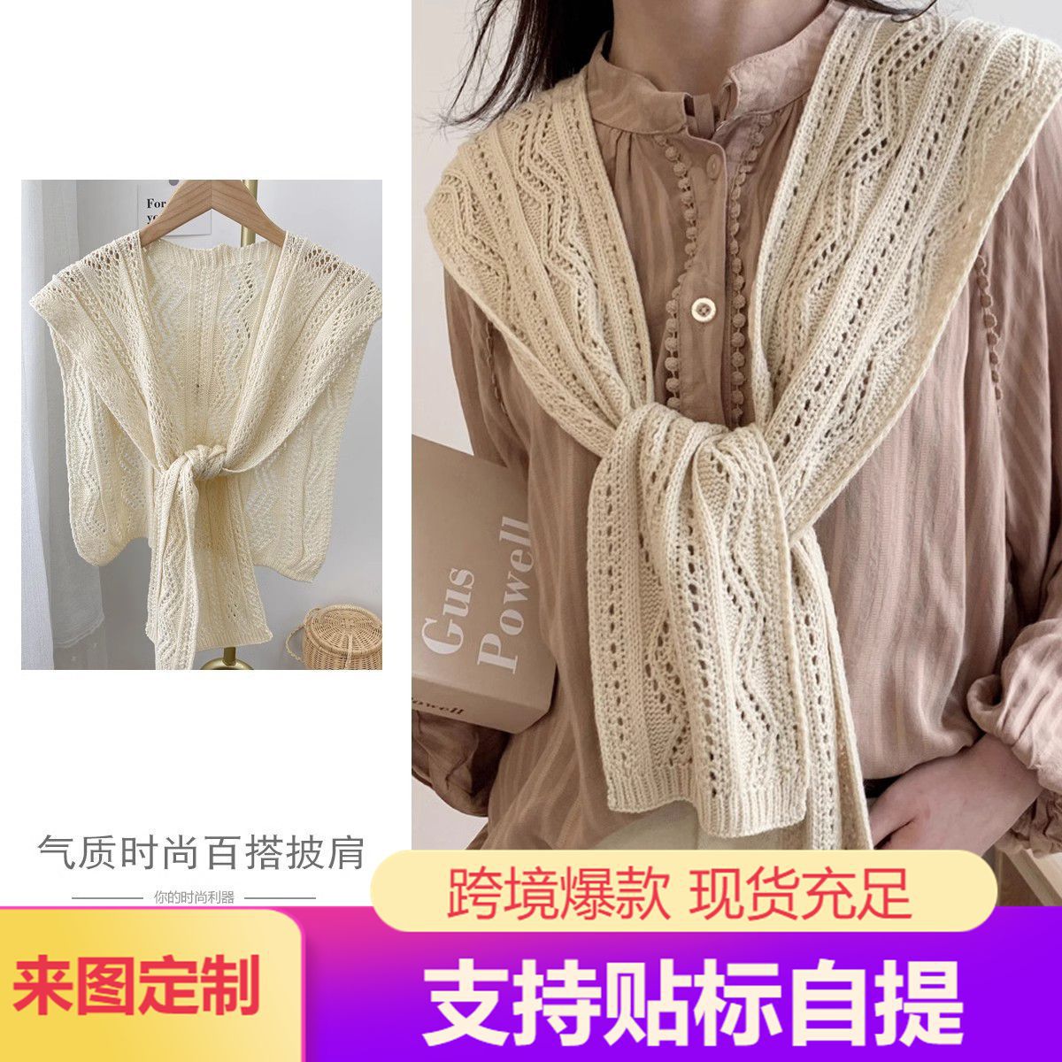 女性用ニットショール、春秋万能ネットセレブネックプロテクター、ストライプ空調室、中空夏用ベスト、フェイクカラー
